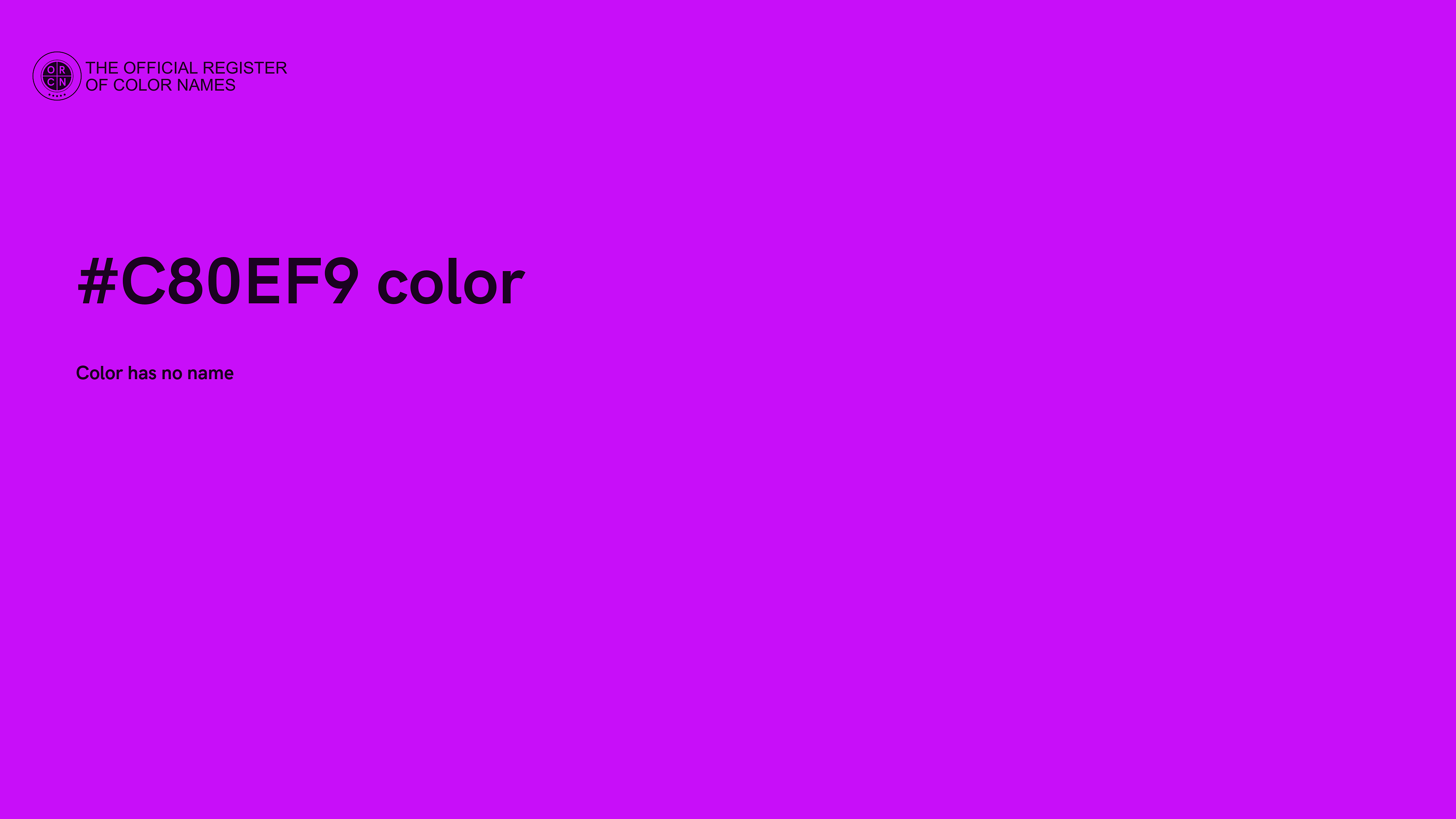 For printing in non digital world, #C80EF9 is represented in CMYK as 19 Cyan, 92 Magenta, 0 Yellow, and 2 Black (Key) (C:19 M:92 Y:0 K:2).
