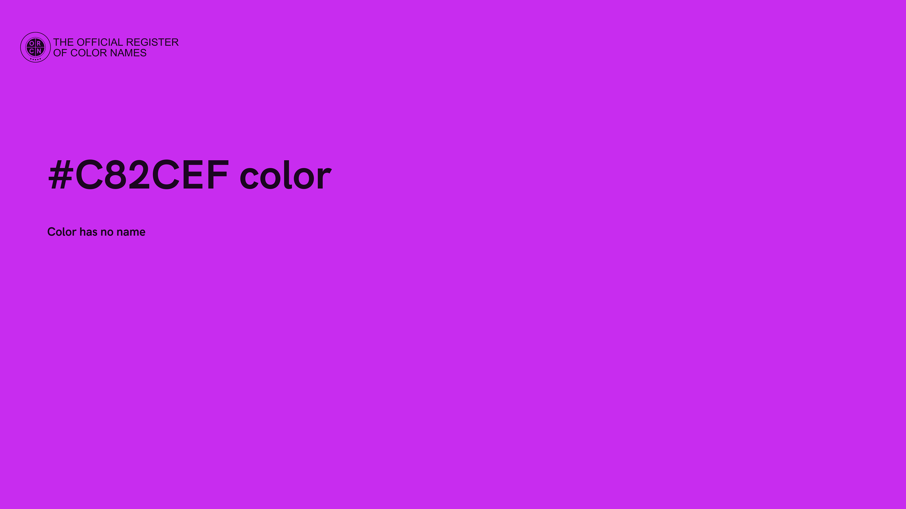 HEX code #C82CEF represent the color in hexadecimal format by combining three values – the amounts of Red, Green and Blue (RGB). Its RGB composition is 200, 44, 239 ( rgb(200, 44, 239) ), which breaks down into 78.4% of Red, 17.3% Green and 93.7% Blue.
