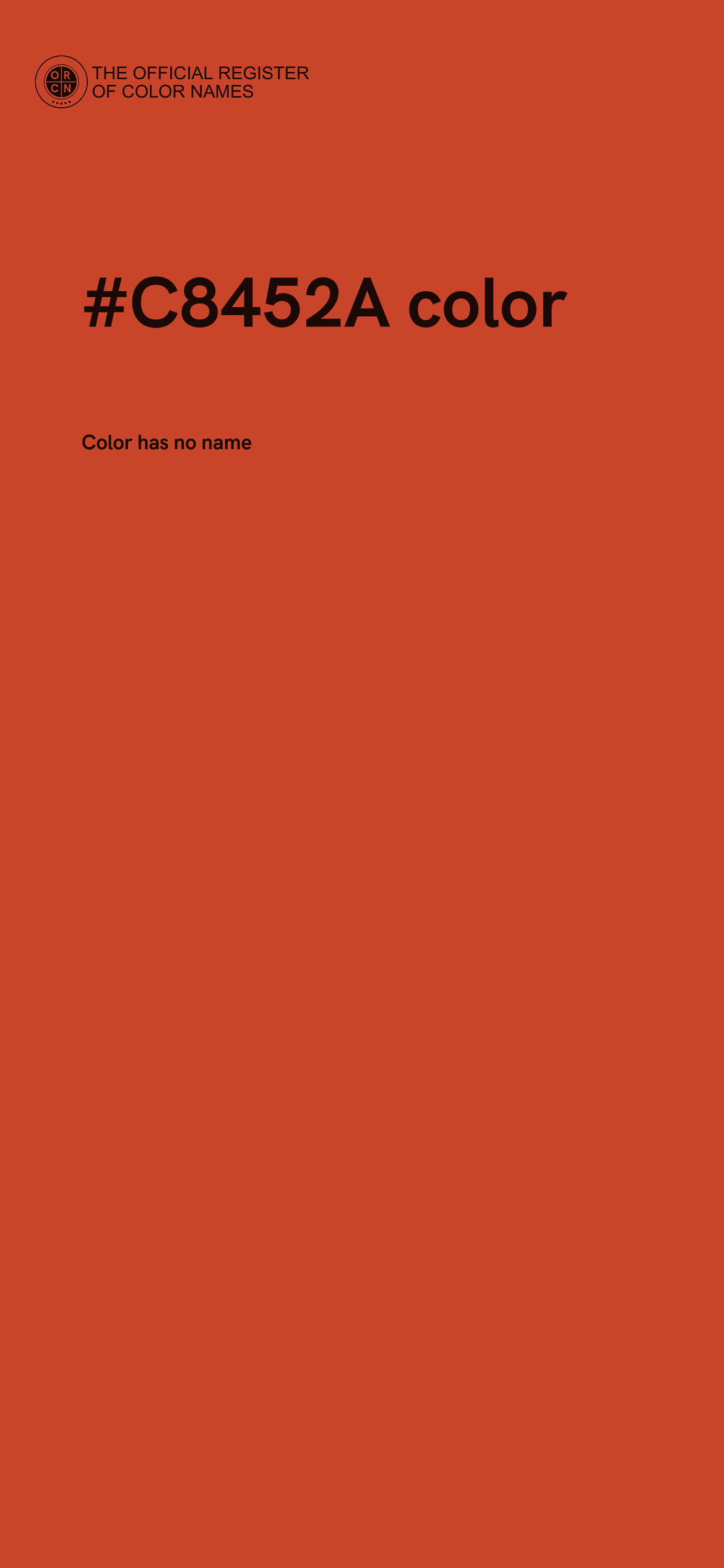 The digital color HEX #C8452A belongs to the Red Color Family featuring High Saturation (Saturation Family) and Light (Brightness Family).
