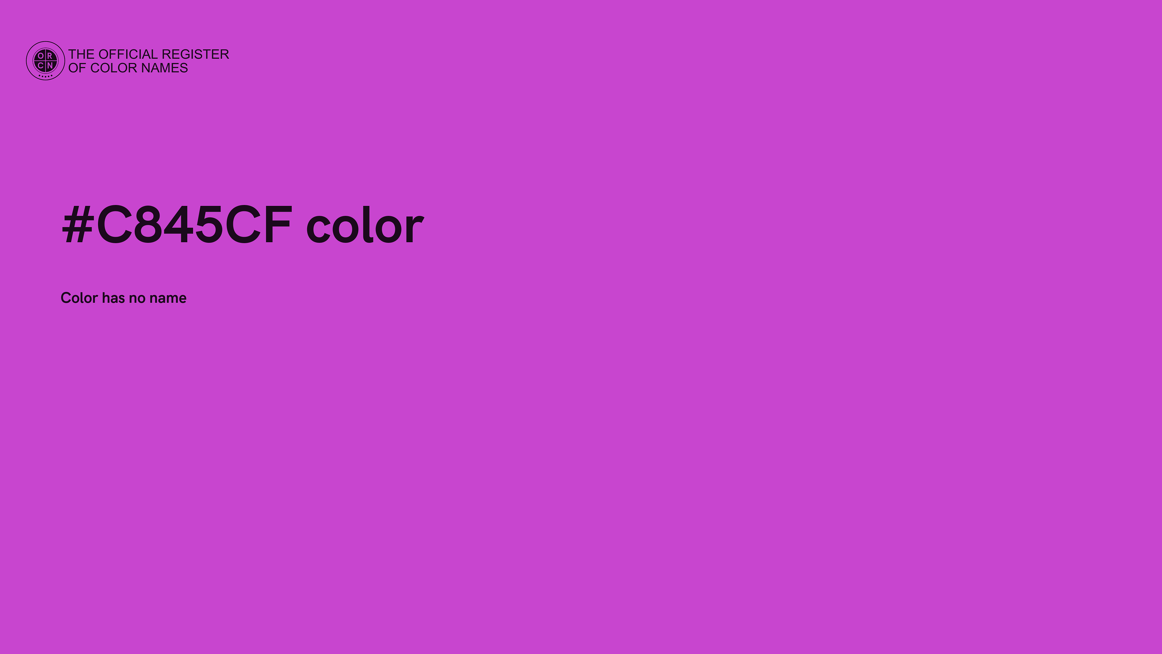 The digital color HEX #C845CF belongs to the Magenta Color Family featuring Moderate Saturation (Saturation Family) and Light (Brightness Family).