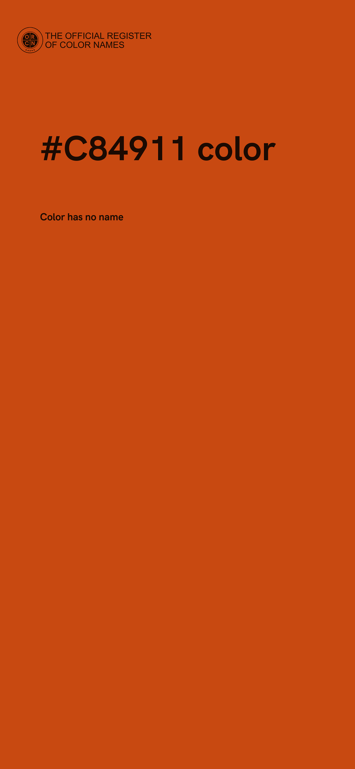 The digital color HEX #C84911 belongs to the Orange Color Family featuring High Saturation (Saturation Family) and Light (Brightness Family).