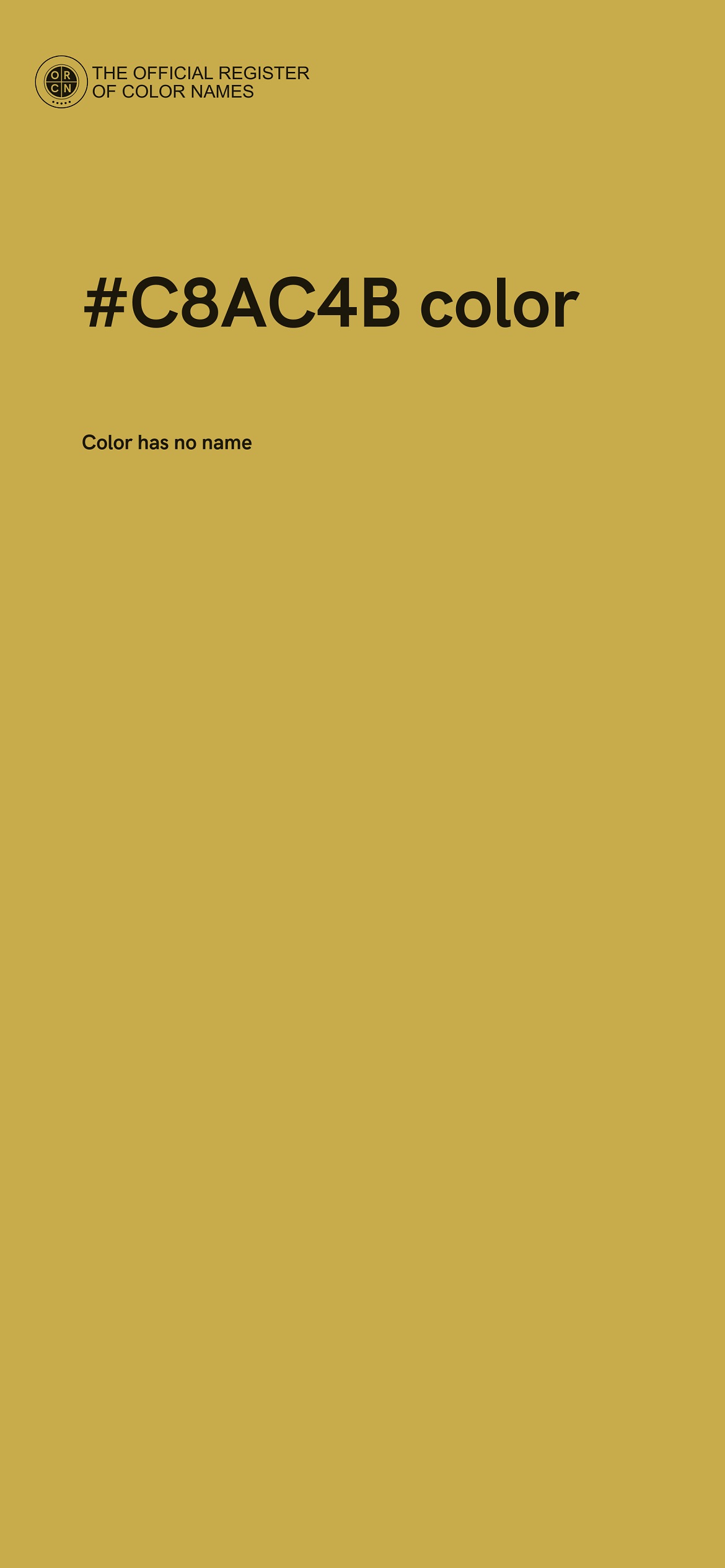 For printing in non digital world, #C8AC4B is represented in CMYK as 0 Cyan, 11 Magenta, 49 Yellow, and 22 Black (Key) (C:0 M:11 Y:49 K:22).