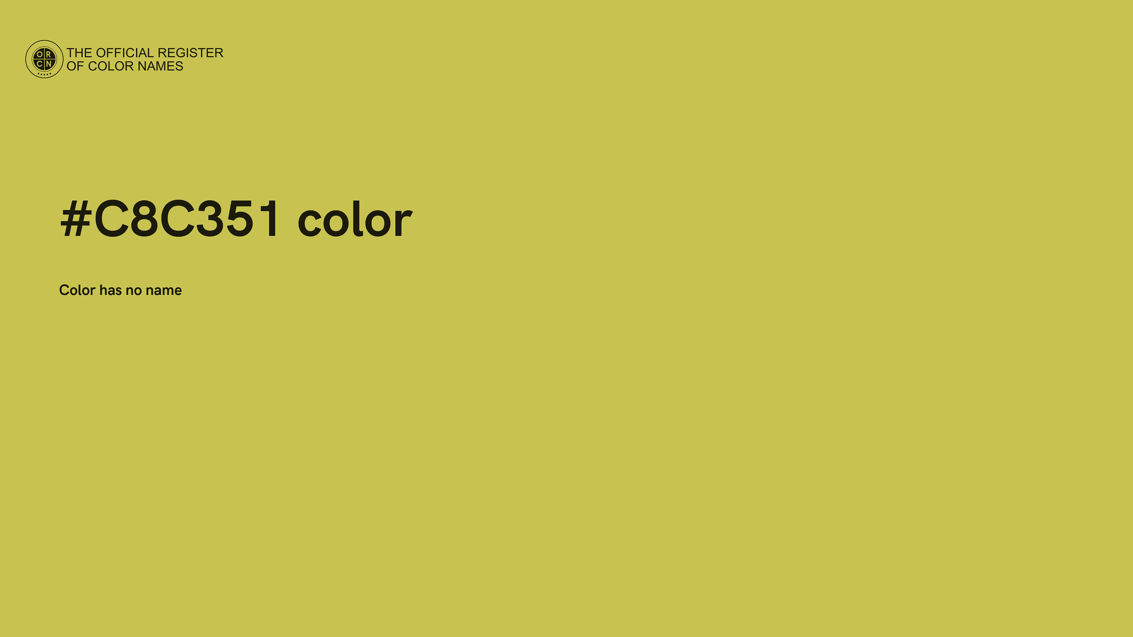 For printing in non digital world, #C8C351 is represented in CMYK as 0 Cyan, 2 Magenta, 47 Yellow, and 22 Black (Key) (C:0 M:2 Y:47 K:22).