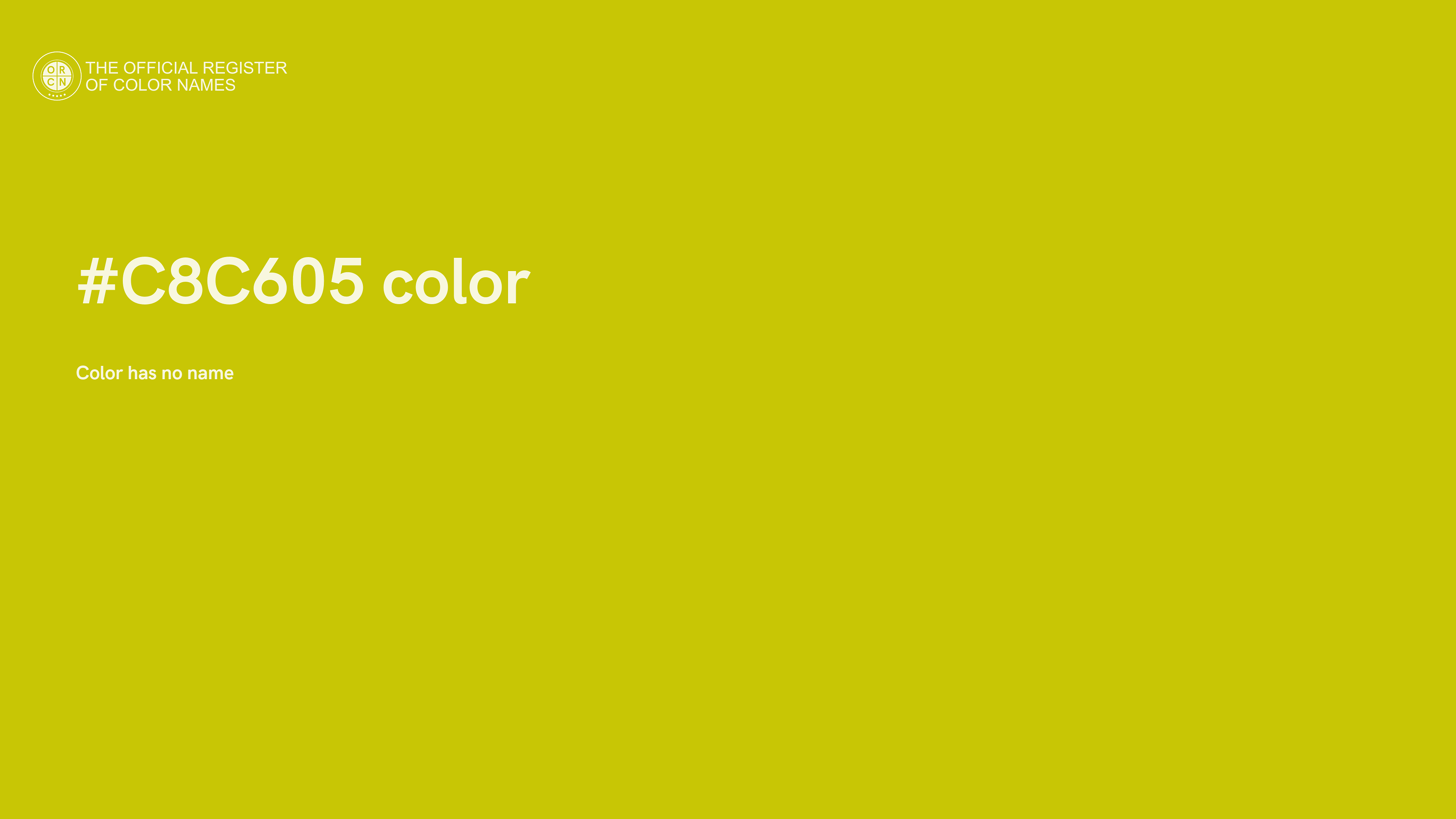 The digital color HEX #C8C605 belongs to the Yellow Color Family featuring Full Saturation (Saturation Family) and Light (Brightness Family).