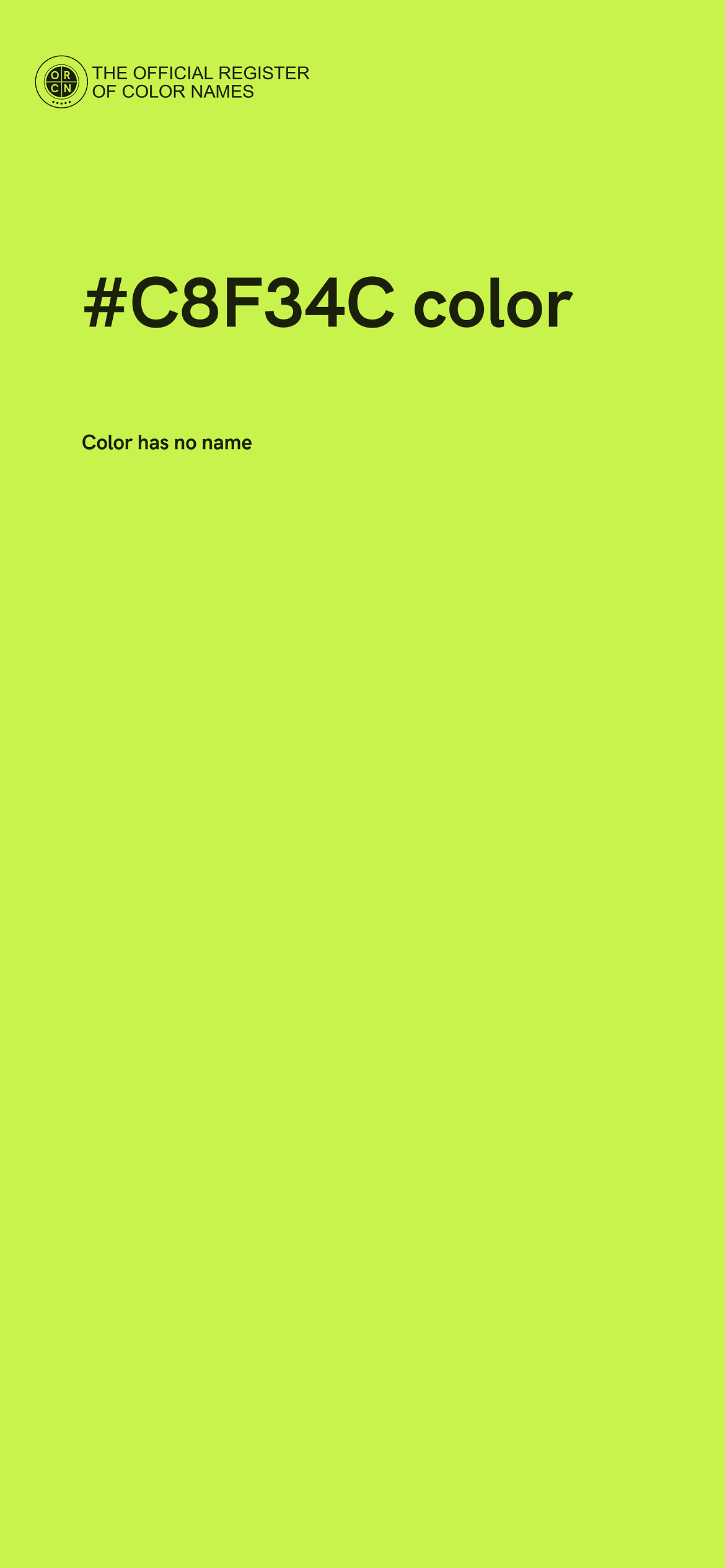 The digital color HEX #C8F34C belongs to the Chartreuse Color Family featuring Full Saturation (Saturation Family) and Very Light (Brightness Family).