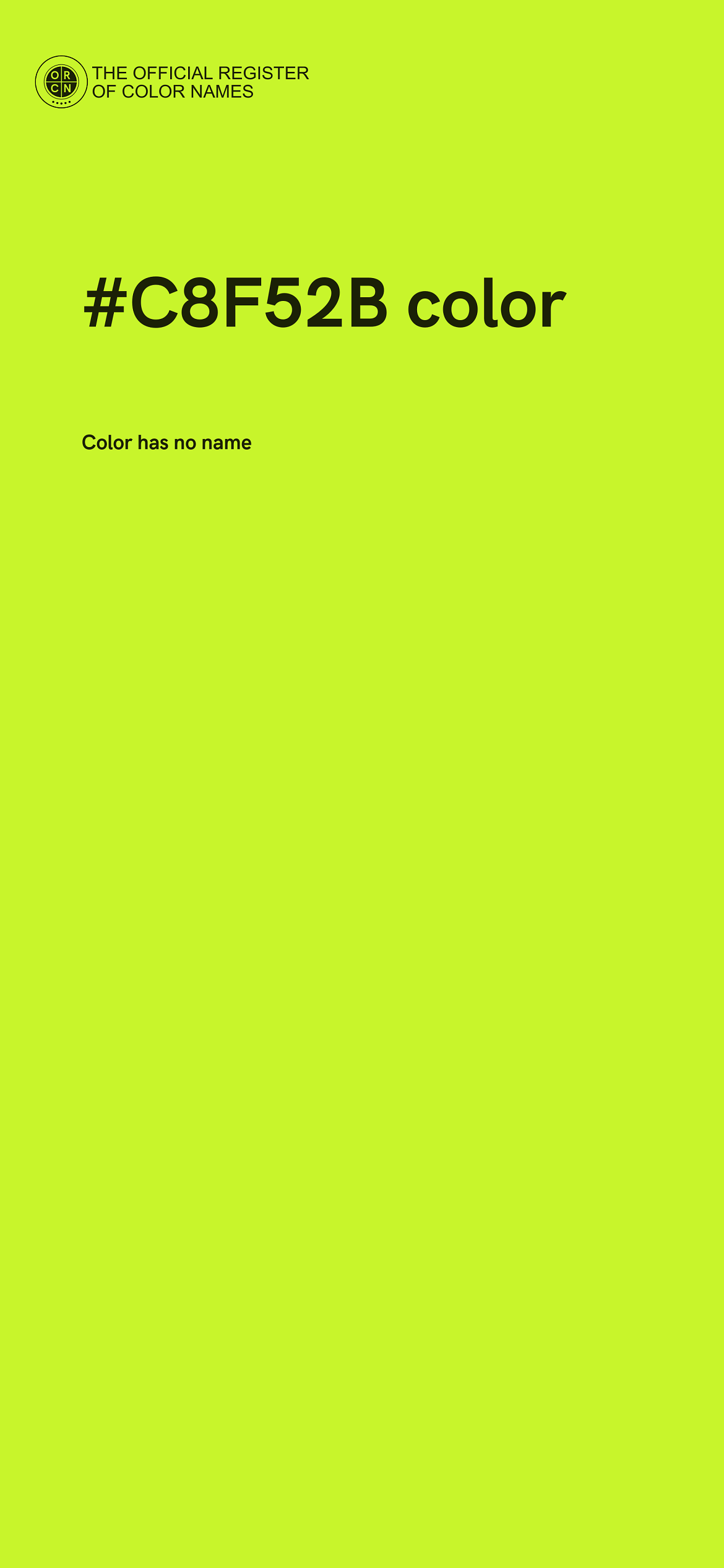 The digital color HEX #C8F52B belongs to the Yellow Color Family featuring Full Saturation (Saturation Family) and Light (Brightness Family).