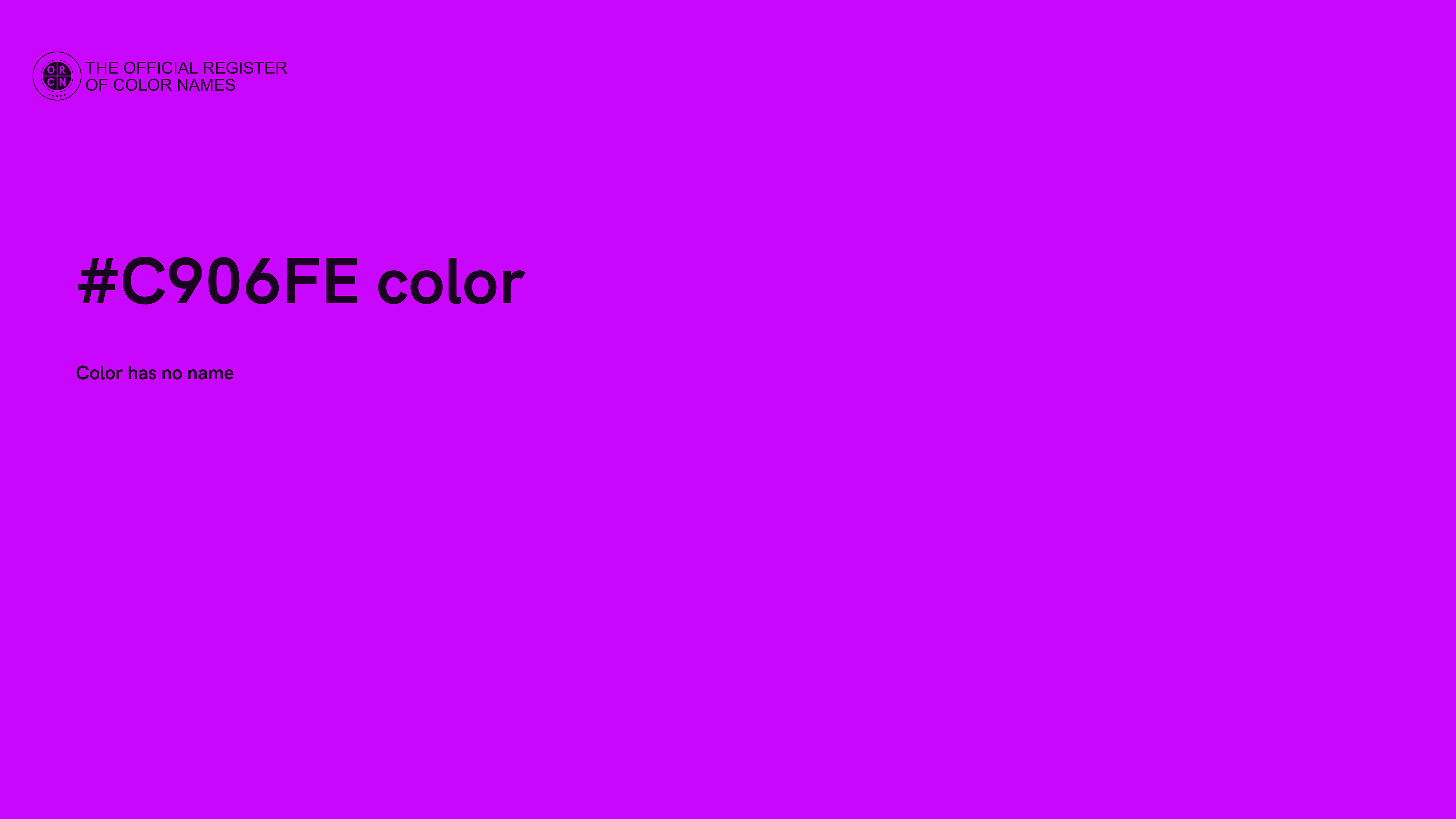 The digital color HEX #C906FE belongs to the Magenta Color Family featuring Full Saturation (Saturation Family) and Light (Brightness Family).