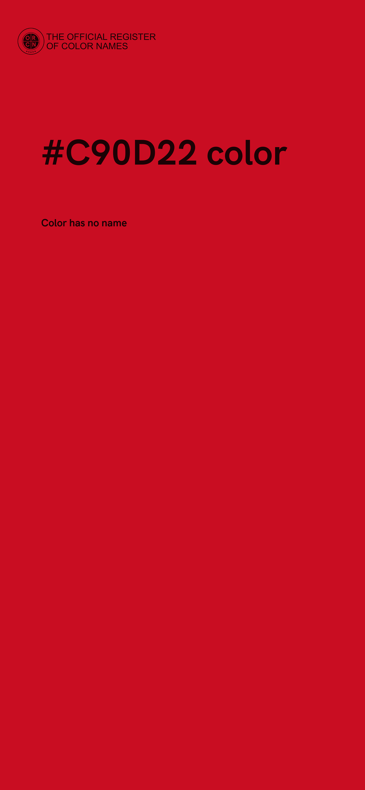 The digital color HEX #C90D22 belongs to the Red Color Family featuring Full Saturation (Saturation Family) and Light (Brightness Family).