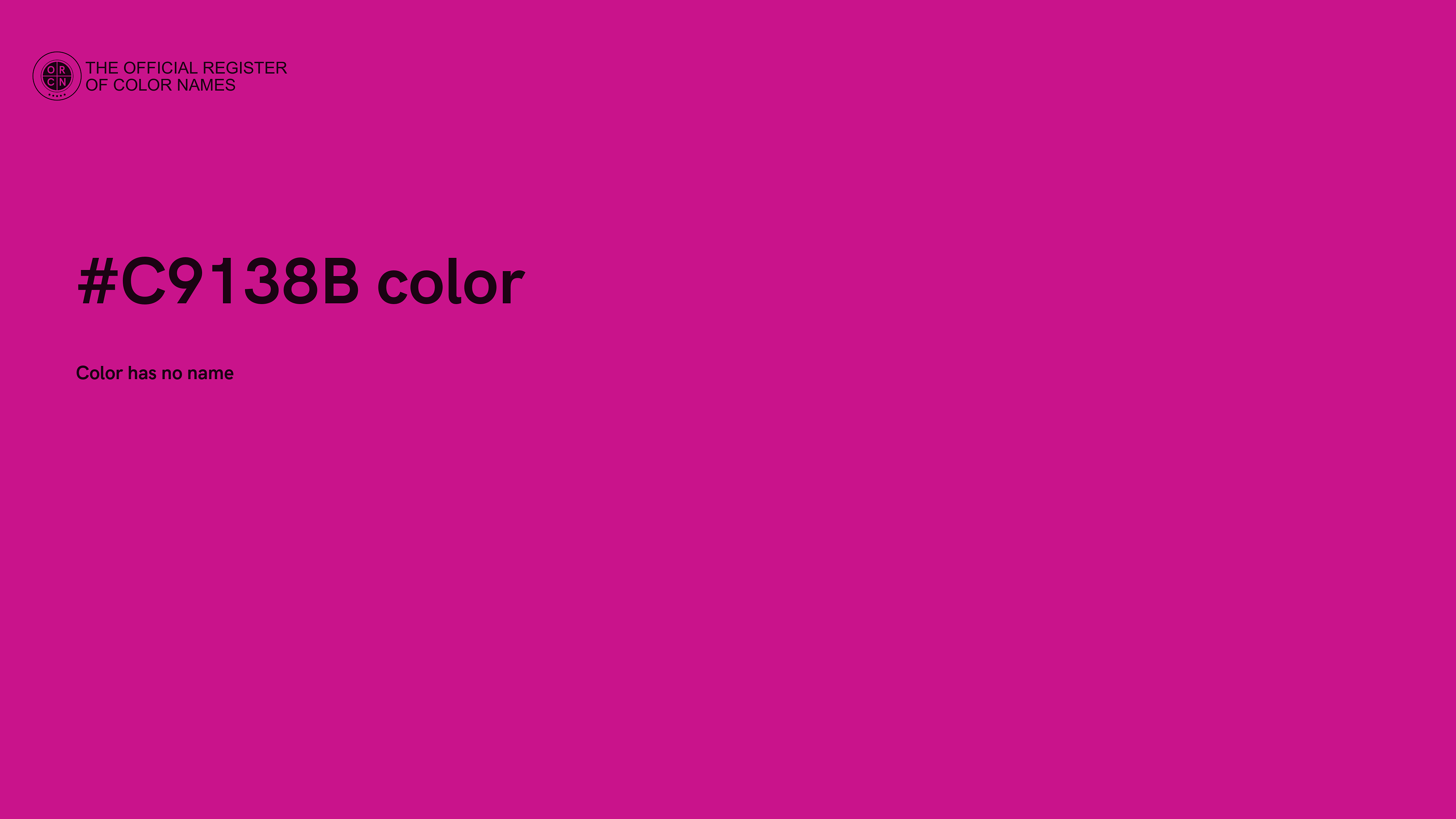 For printing in non digital world, #C9138B is represented in CMYK as 0 Cyan, 71 Magenta, 24 Yellow, and 21 Black (Key) (C:0 M:71 Y:24 K:21).