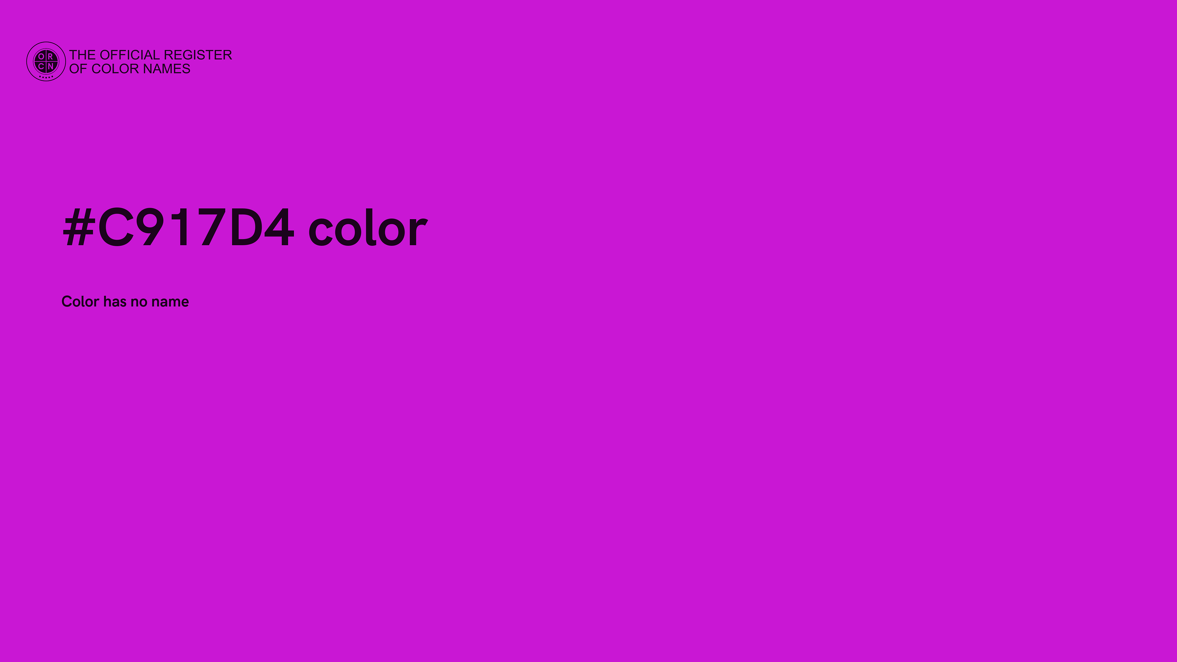 For printing in non digital world, #C917D4 is represented in CMYK as 4 Cyan, 74 Magenta, 0 Yellow, and 17 Black (Key) (C:4 M:74 Y:0 K:17).