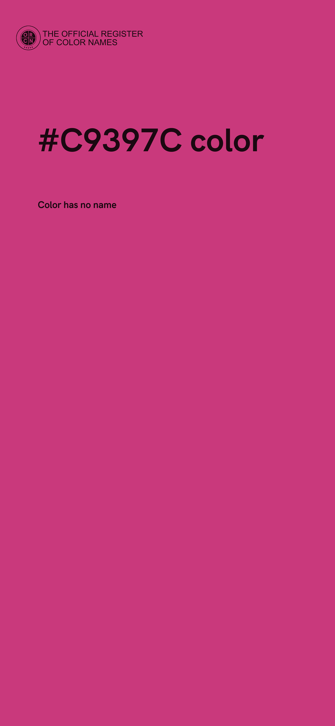 The digital color HEX #C9397C belongs to the Rose Color Family featuring Moderate Saturation (Saturation Family) and Light (Brightness Family).