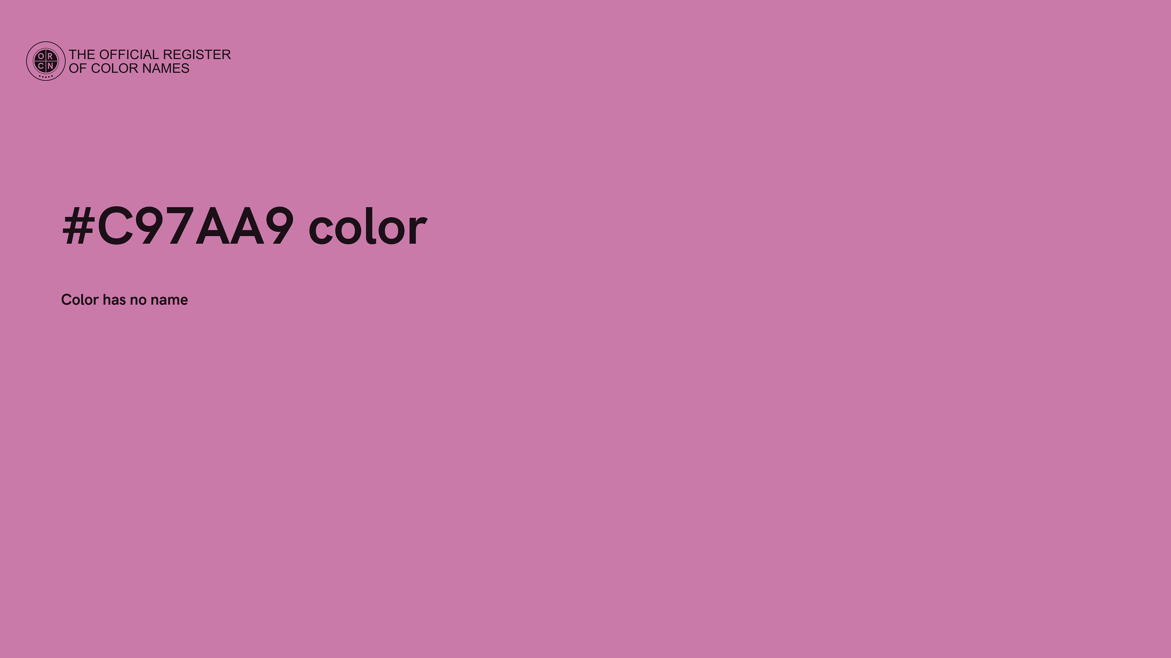 The digital color HEX #C97AA9 belongs to the Rose Color Family featuring Moderate Saturation (Saturation Family) and Very Light (Brightness Family).