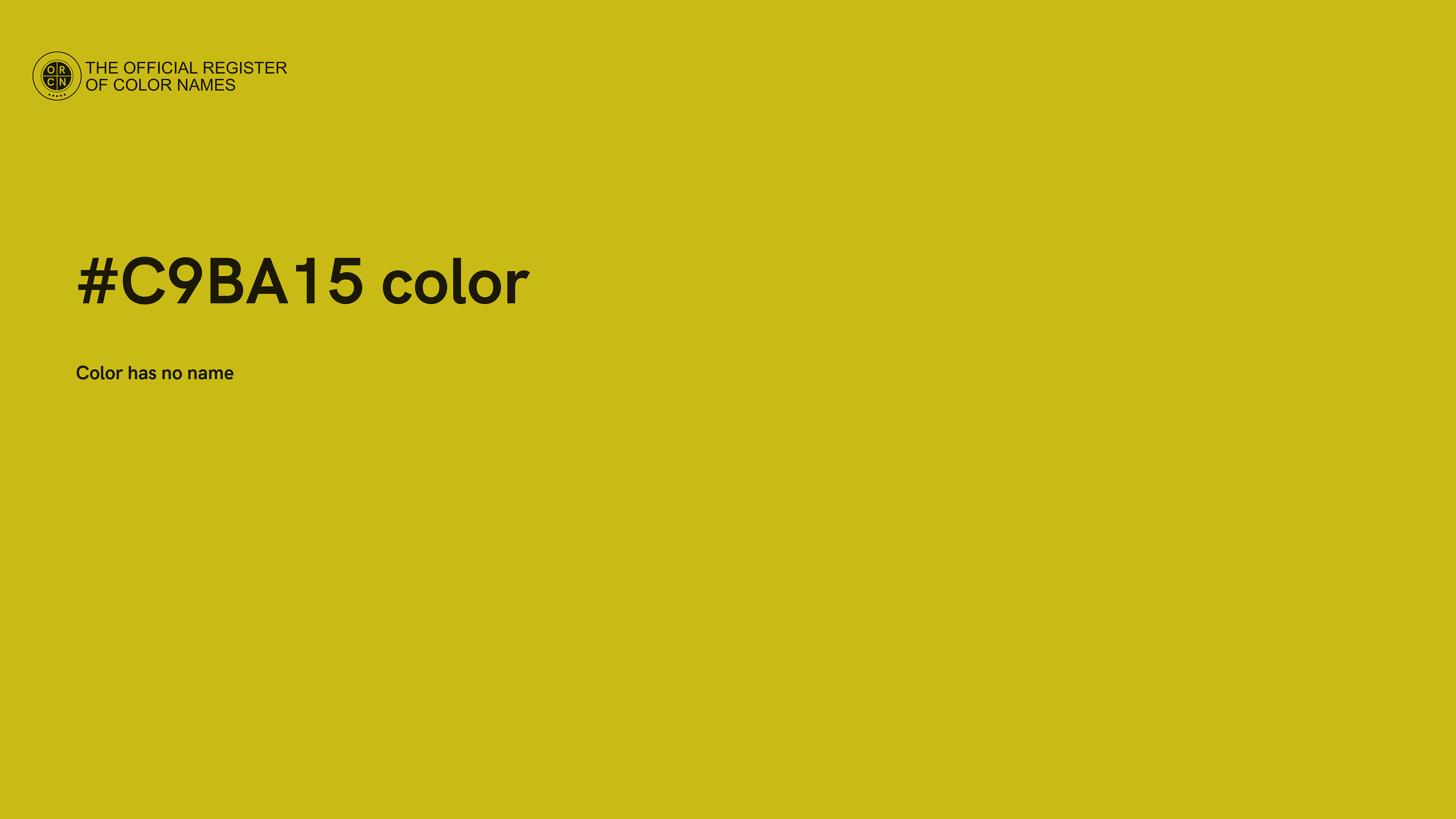 The digital color HEX #C9BA15 belongs to the Yellow Color Family featuring High Saturation (Saturation Family) and Light (Brightness Family).