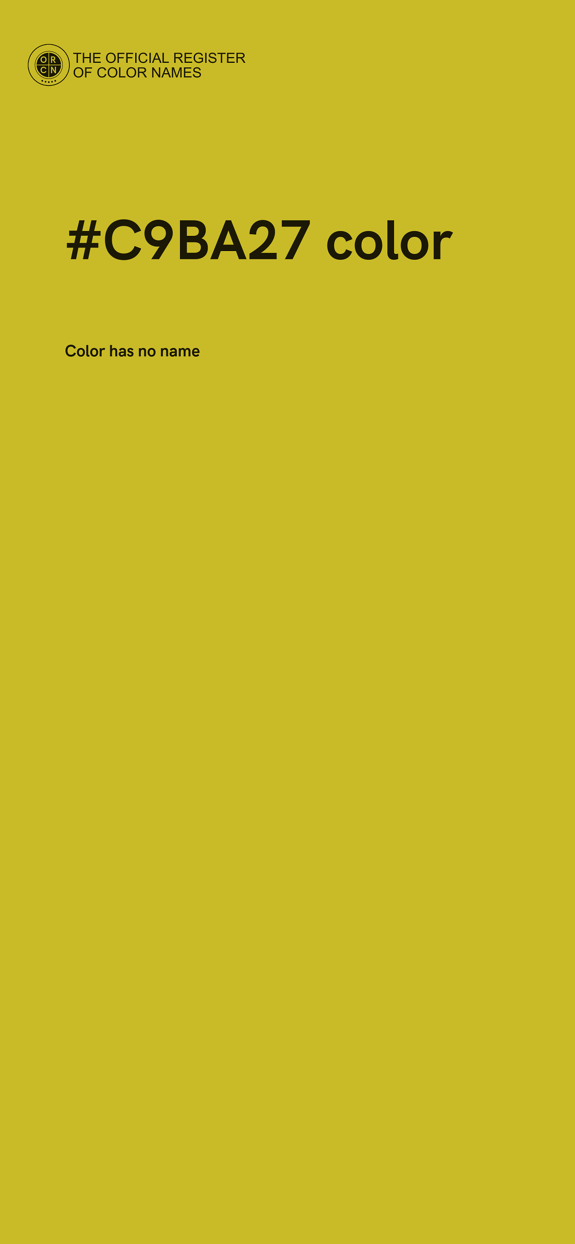The digital color HEX #C9BA27 belongs to the Yellow Color Family featuring High Saturation (Saturation Family) and Light (Brightness Family).