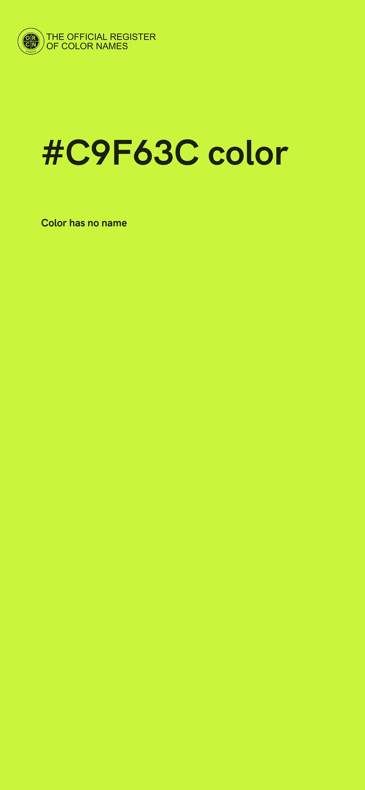 The digital color HEX #C9F63C belongs to the Chartreuse Color Family featuring Full Saturation (Saturation Family) and Very Light (Brightness Family).