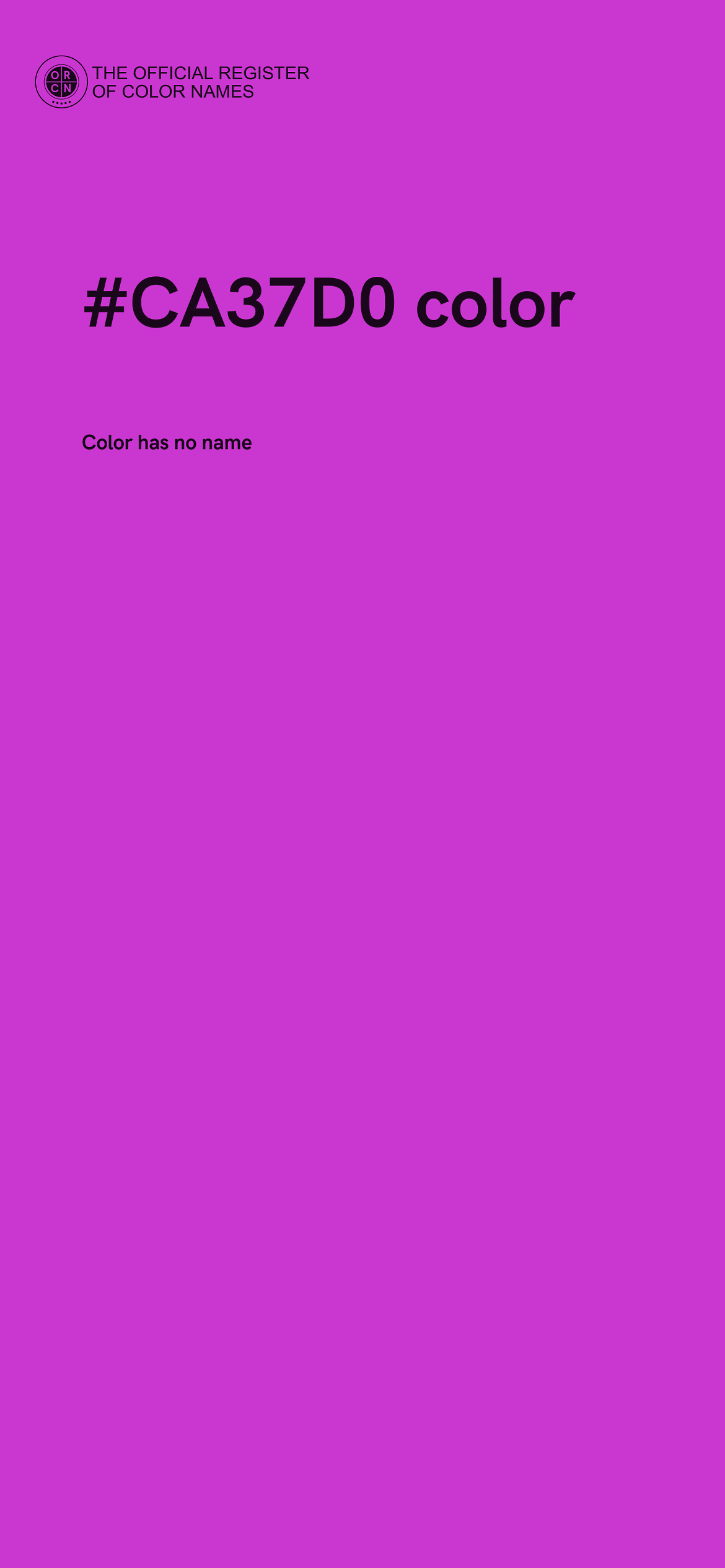 The digital color HEX #CA37D0 belongs to the Magenta Color Family featuring High Saturation (Saturation Family) and Light (Brightness Family).
