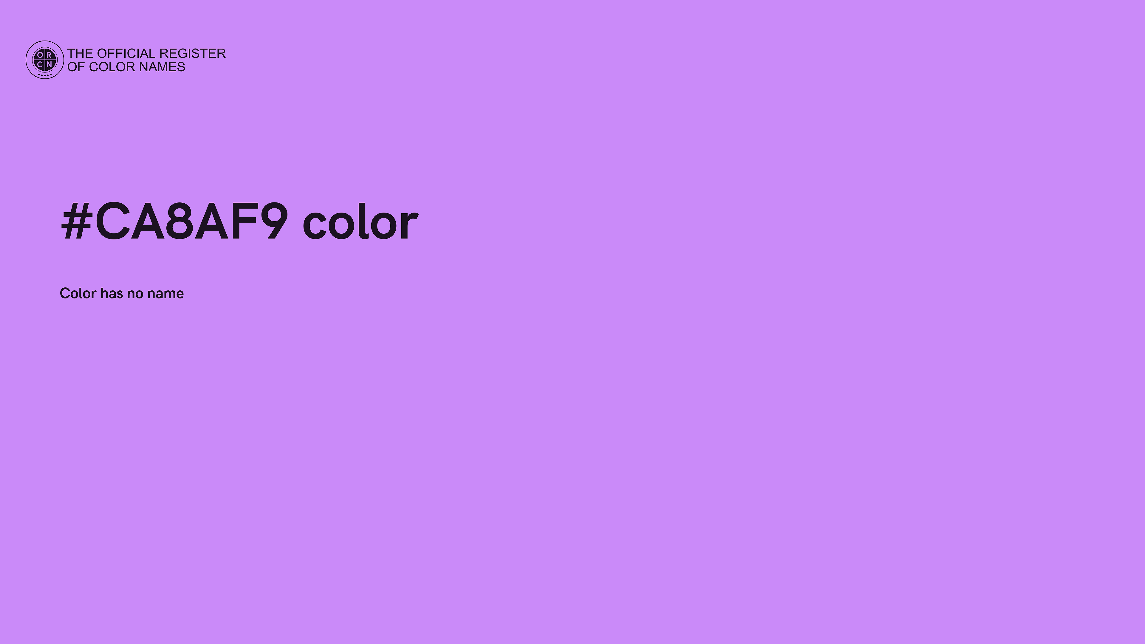 The digital color HEX #CA8AF9 belongs to the Violet Color Family featuring Full Saturation (Saturation Family) and Very Light (Brightness Family).