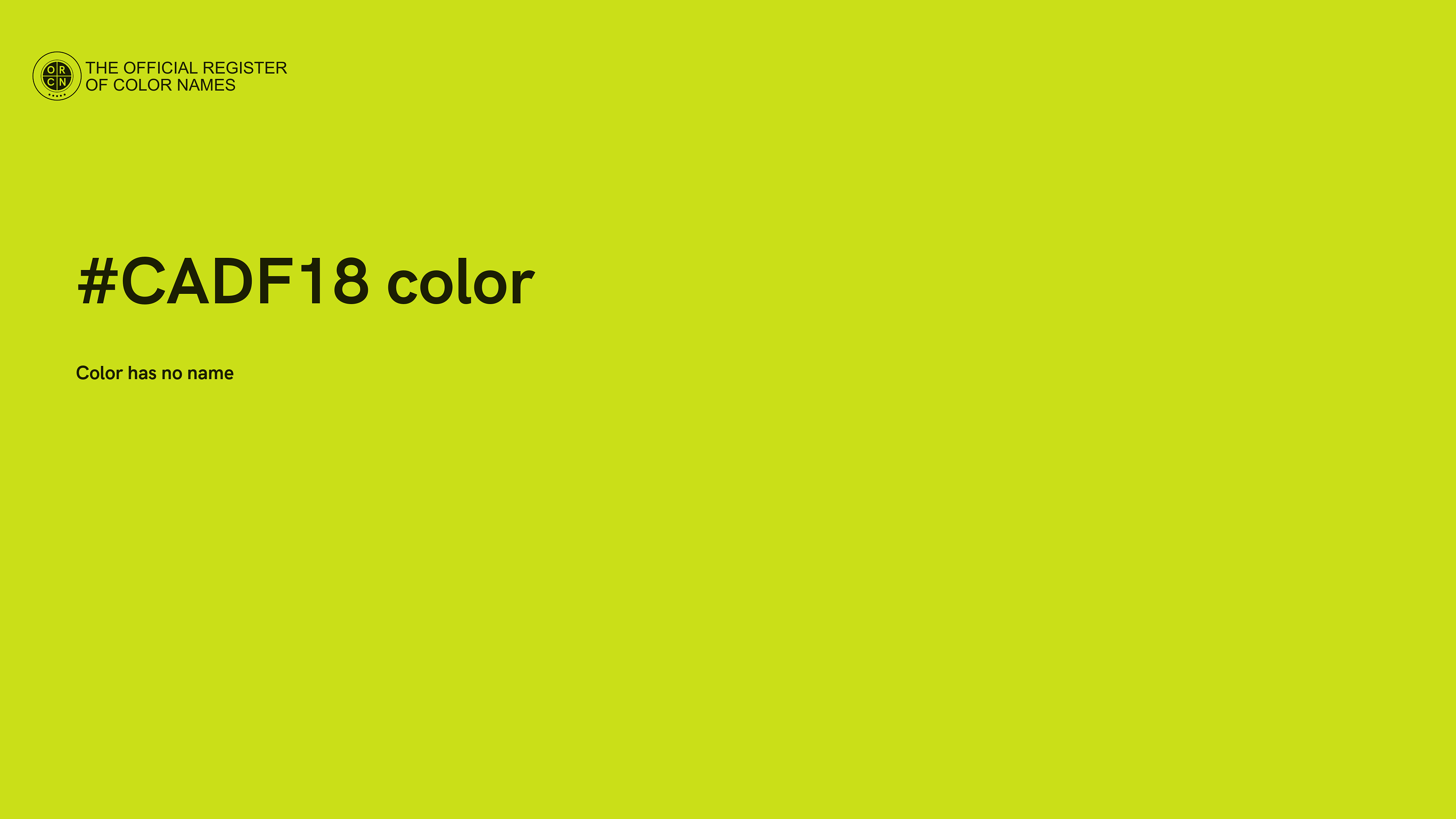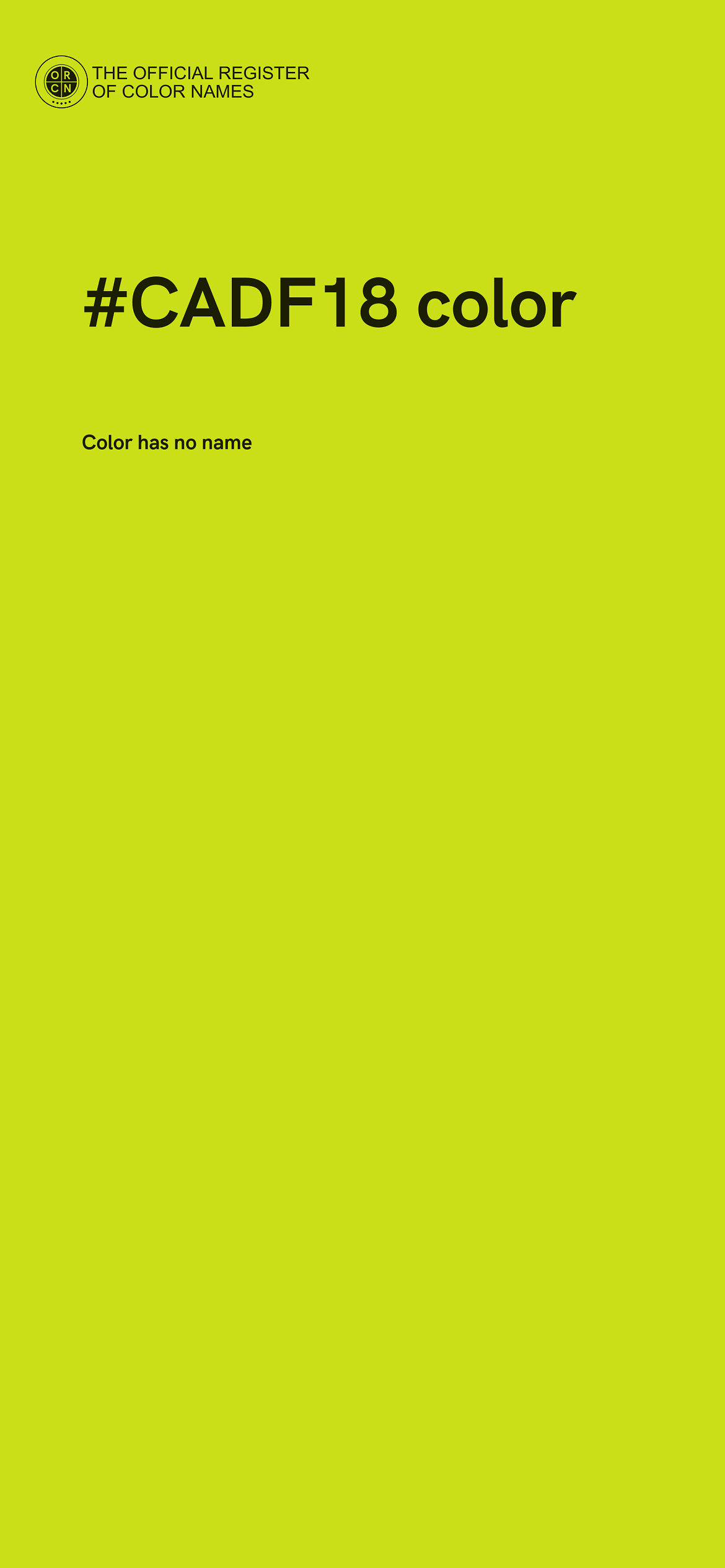 For printing in non digital world, #CADF18 is represented in CMYK as 8 Cyan, 0 Magenta, 78 Yellow, and 13 Black (Key) (C:8 M:0 Y:78 K:13).