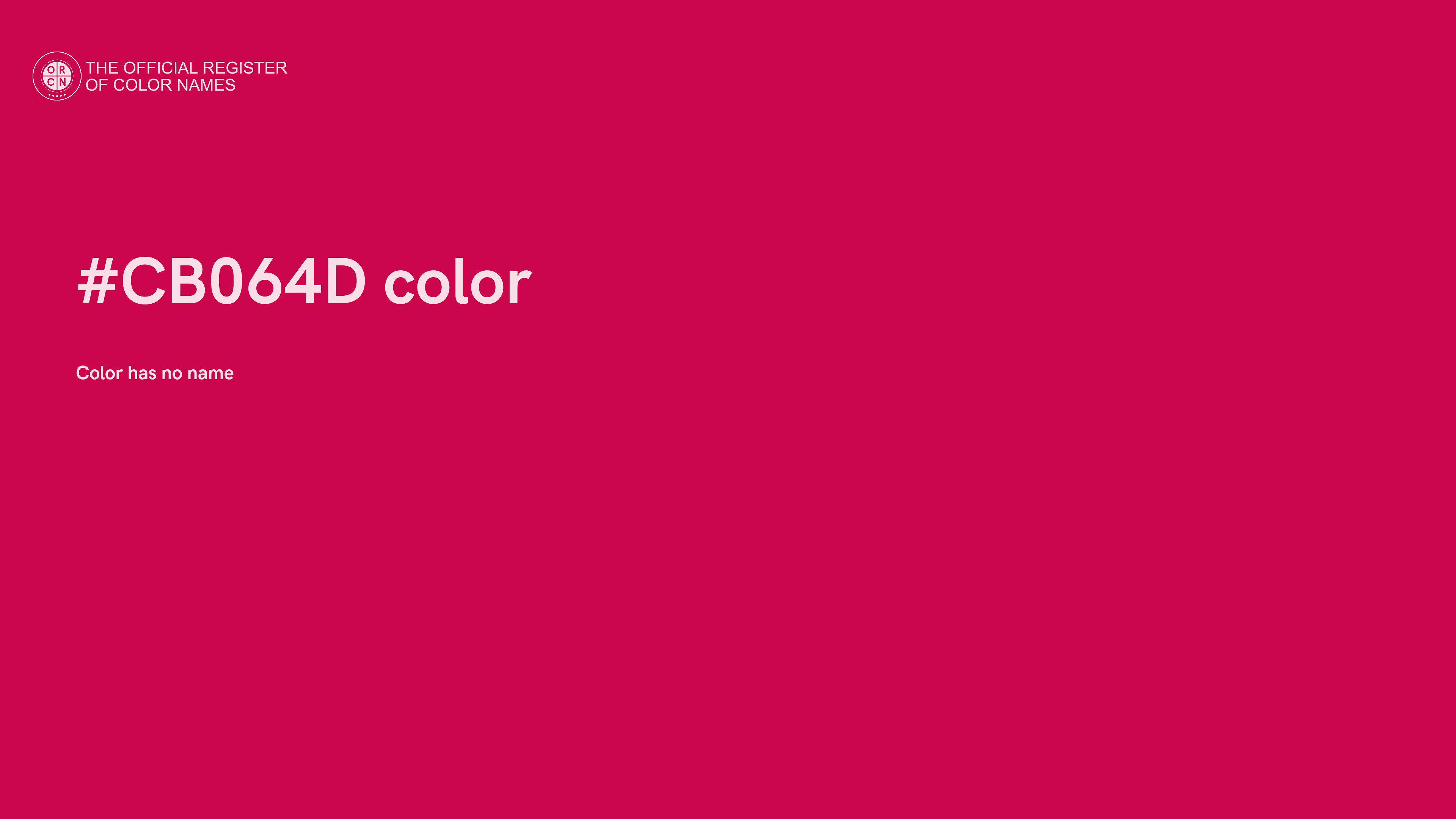 For printing in non digital world, #CB064D is represented in CMYK as 0 Cyan, 77 Magenta, 49 Yellow, and 20 Black (Key) (C:0 M:77 Y:49 K:20).