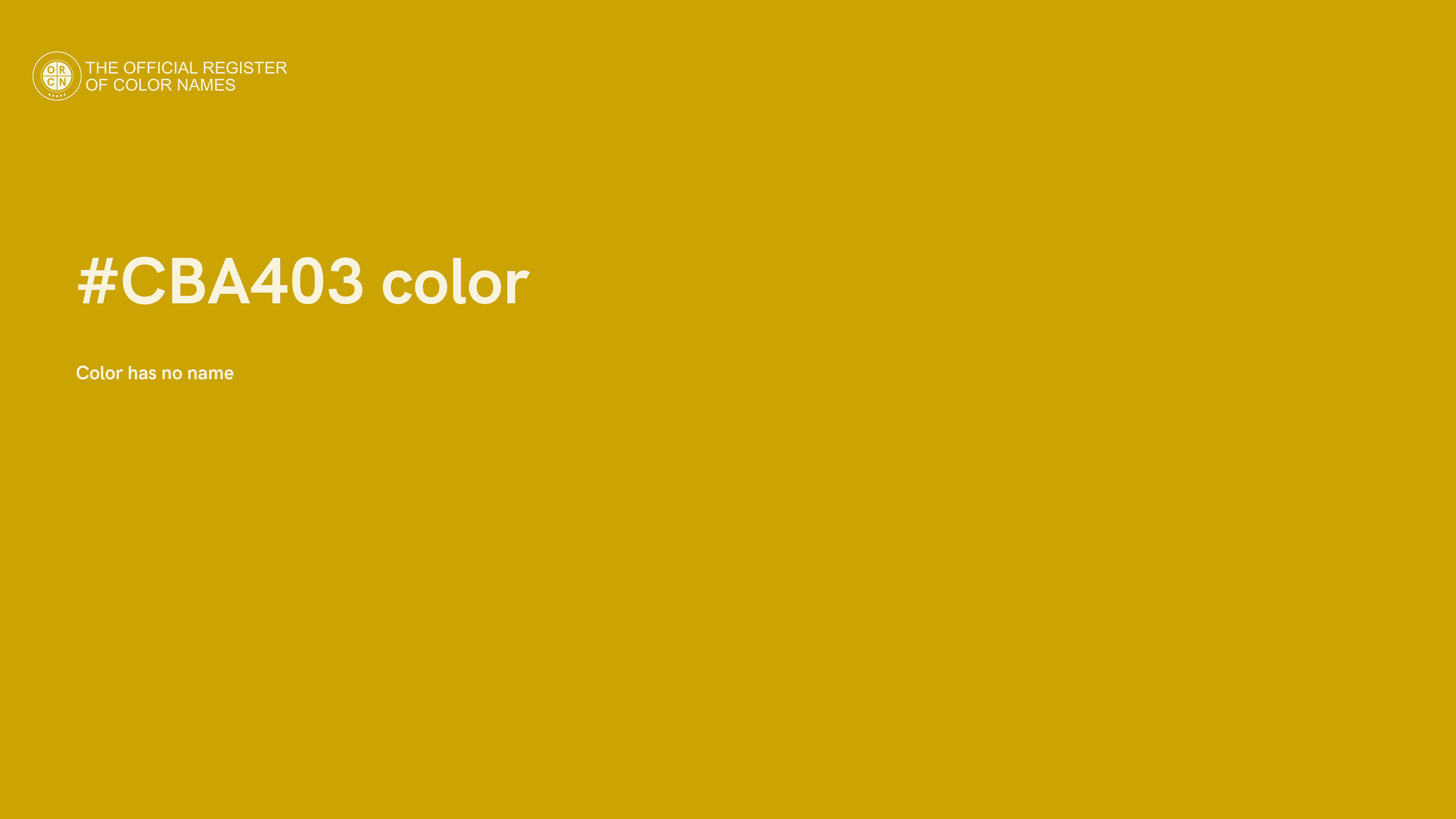 The digital color HEX #CBA403 belongs to the Yellow Color Family featuring Full Saturation (Saturation Family) and Light (Brightness Family).