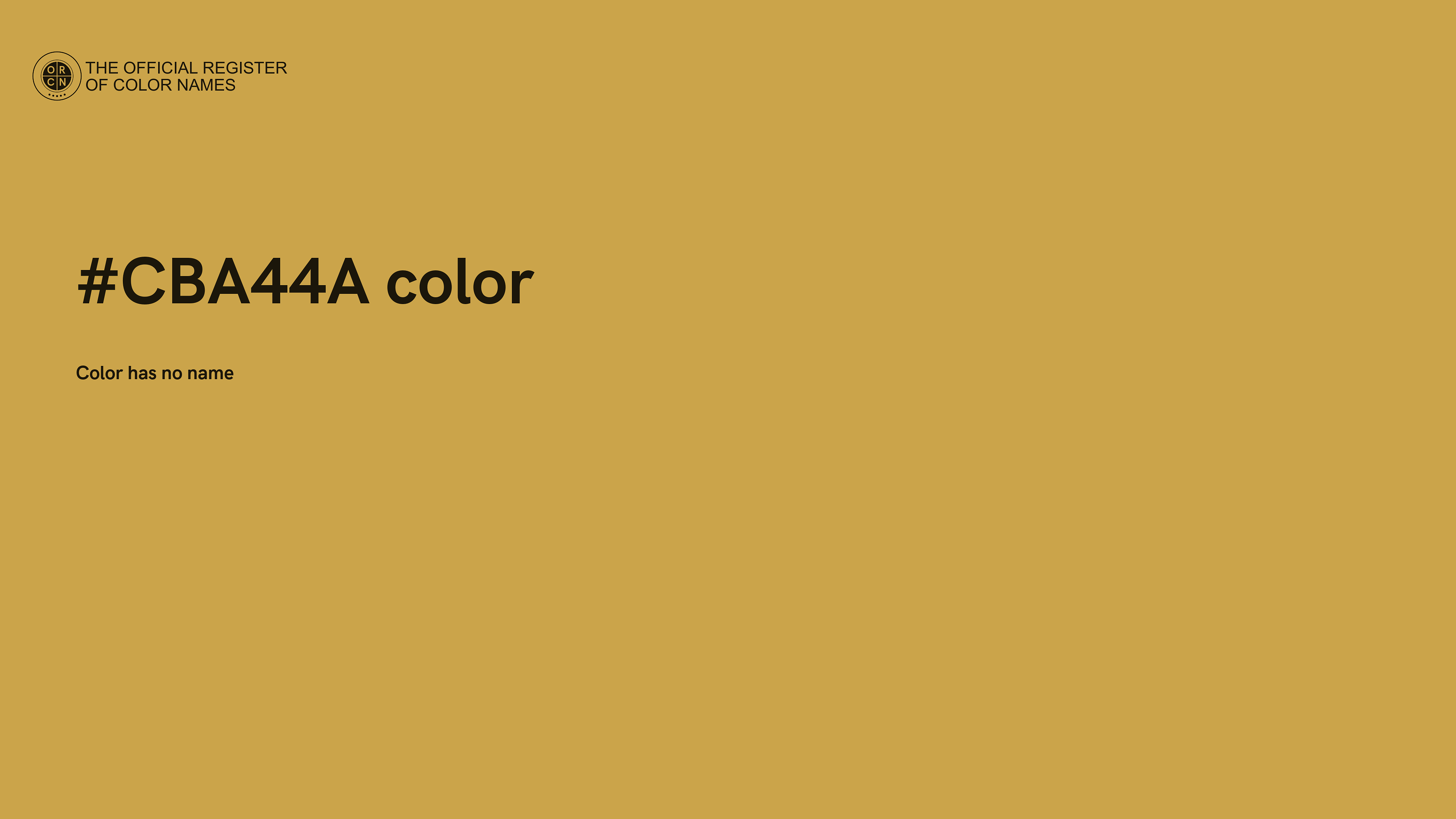 The digital color HEX #CBA44A belongs to the Orange Color Family featuring Moderate Saturation (Saturation Family) and Light (Brightness Family).