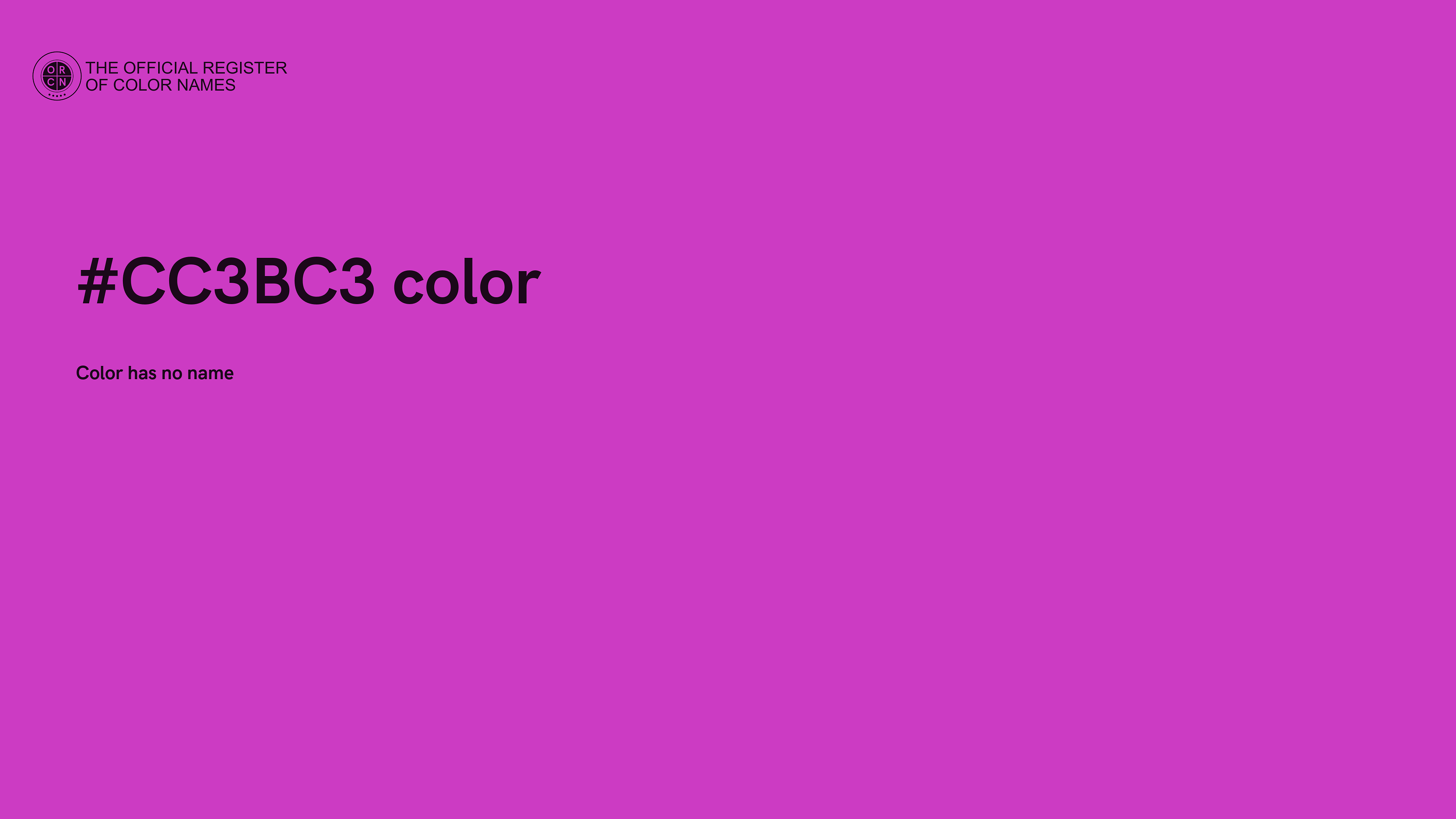 For printing in non digital world, #CC3BC3 is represented in CMYK as 0 Cyan, 57 Magenta, 4 Yellow, and 20 Black (Key) (C:0 M:57 Y:4 K:20).