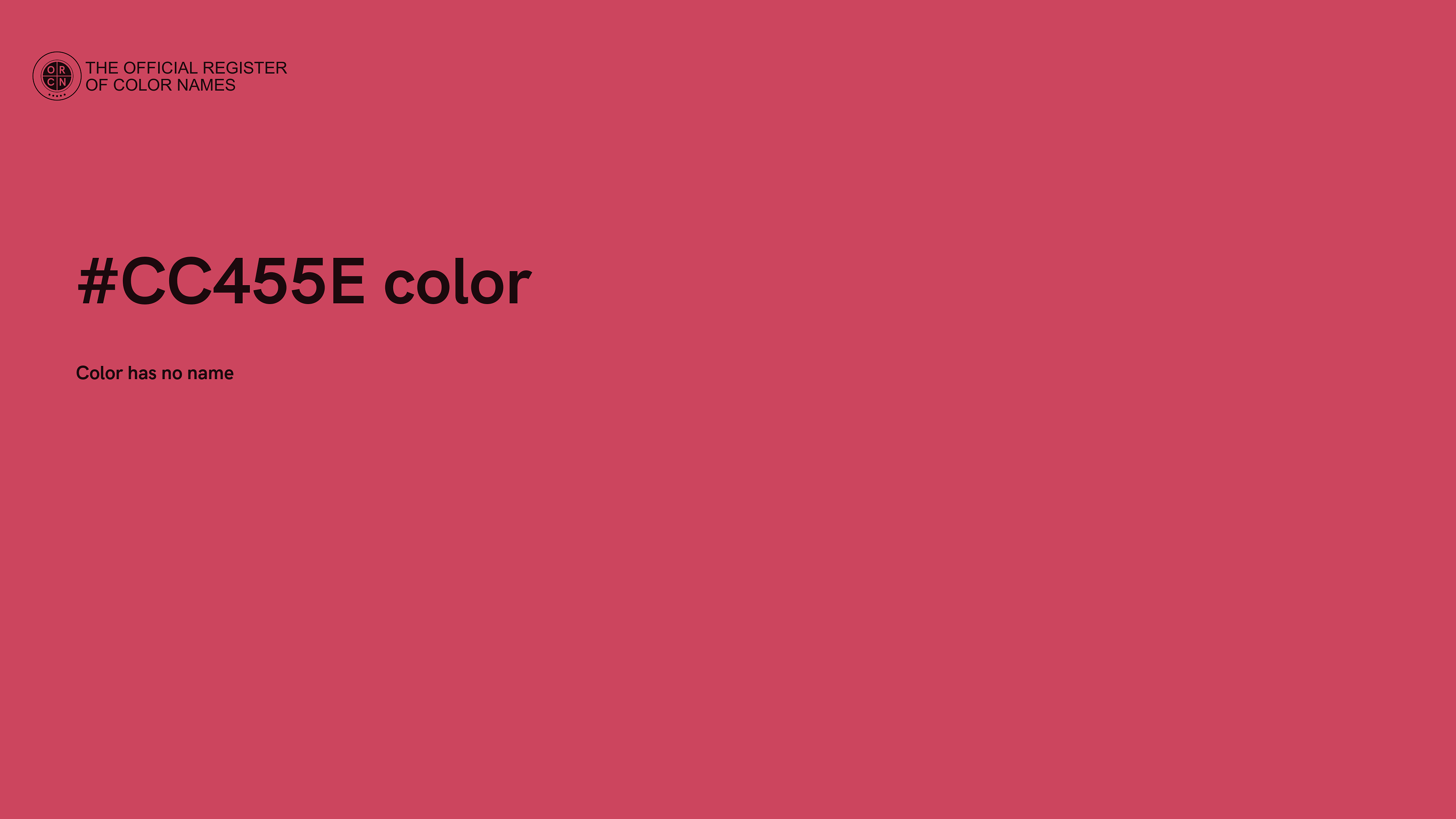 For printing in non digital world, #CC455E is represented in CMYK as 0 Cyan, 53 Magenta, 43 Yellow, and 20 Black (Key) (C:0 M:53 Y:43 K:20).
