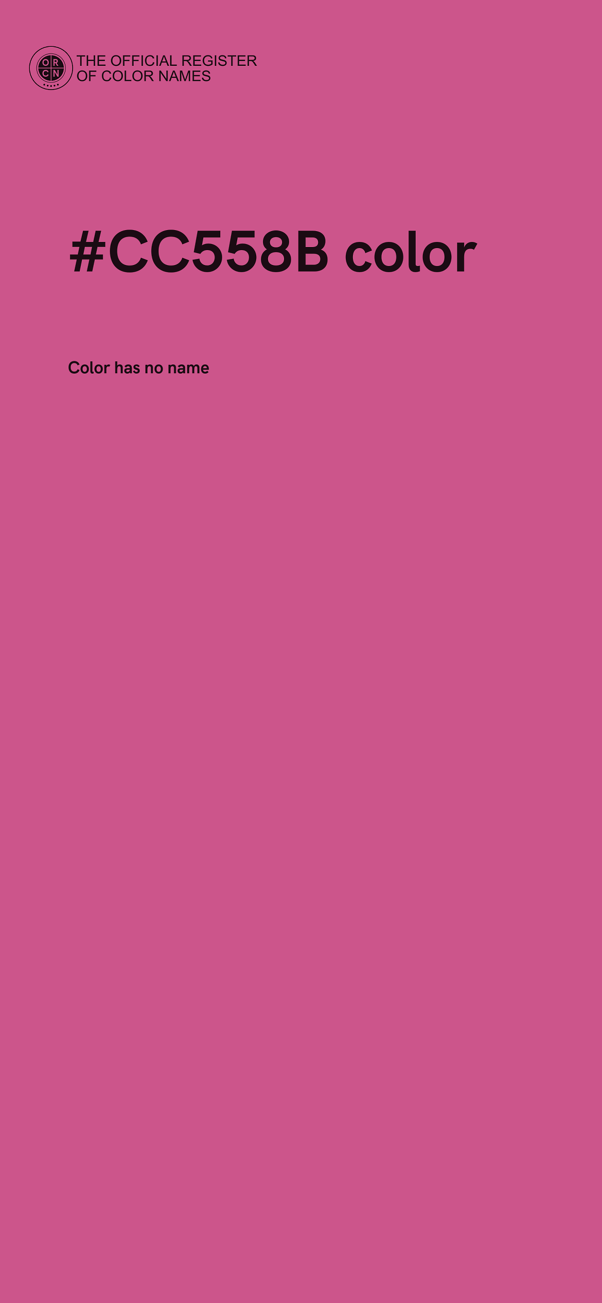 The digital color HEX #CC558B belongs to the Rose Color Family featuring Moderate Saturation (Saturation Family) and Light (Brightness Family).