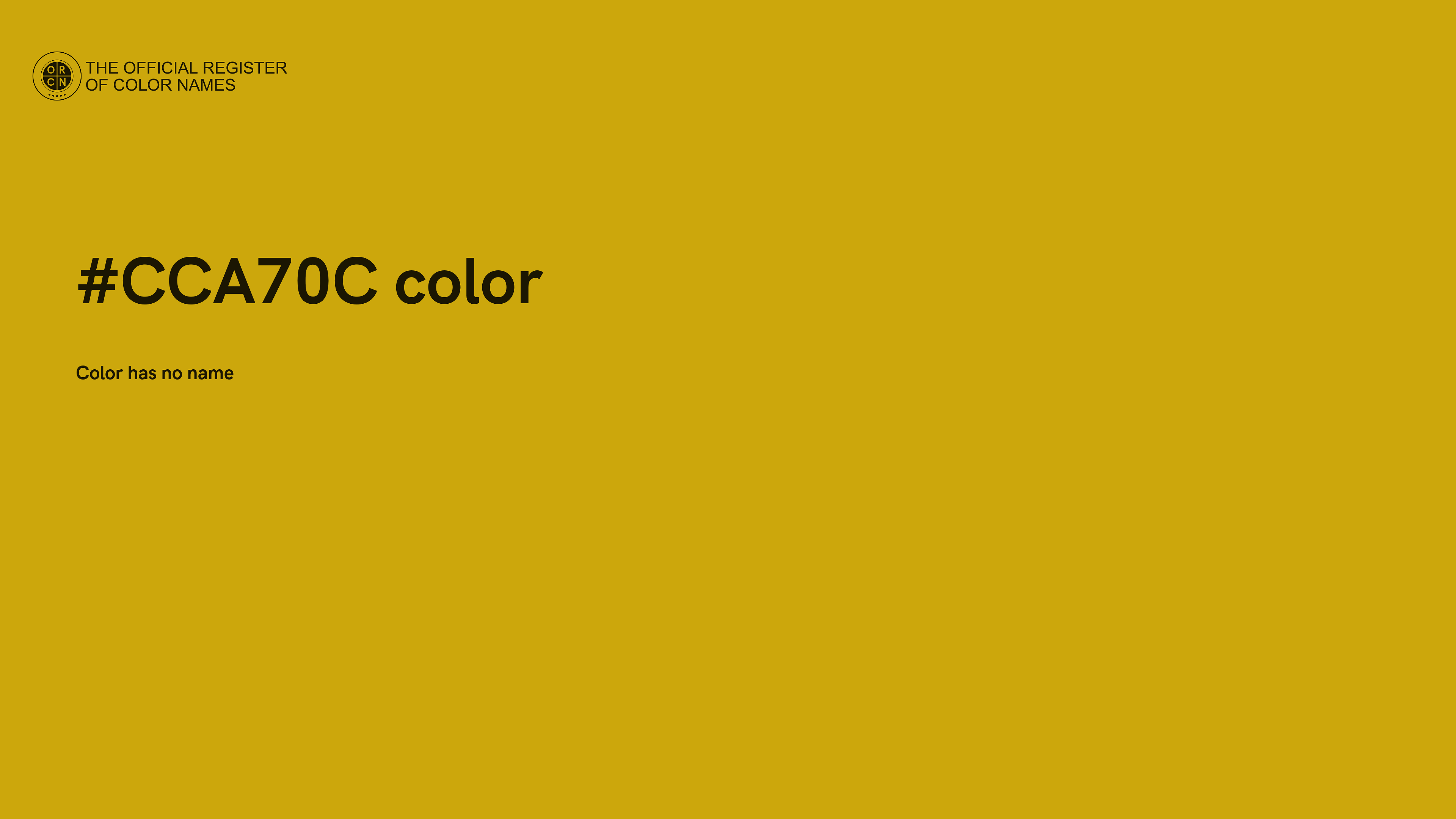 The digital color HEX #CCA70C belongs to the Yellow Color Family featuring Full Saturation (Saturation Family) and Light (Brightness Family).