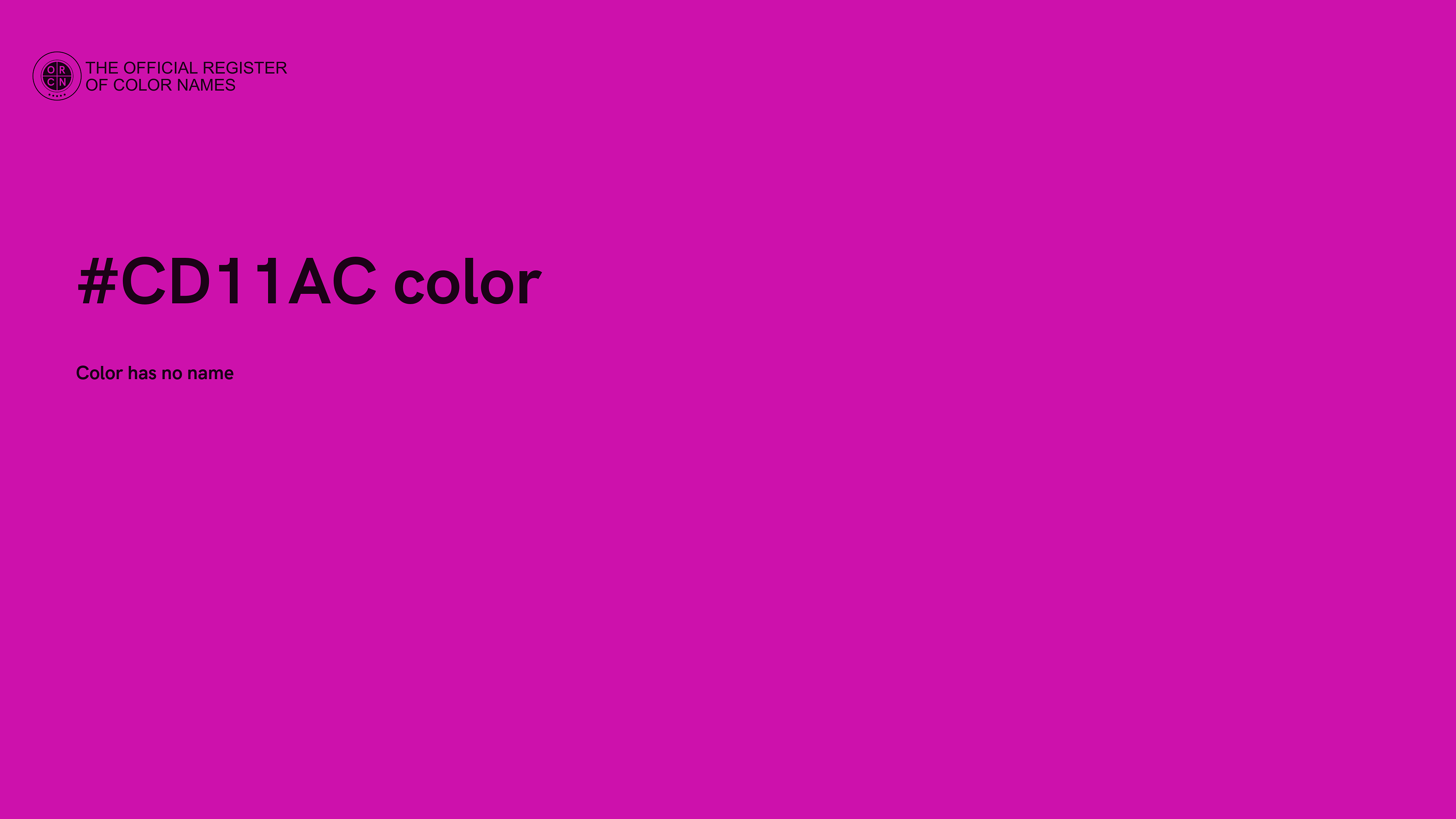 The digital color HEX #CD11AC belongs to the Magenta Color Family featuring Full Saturation (Saturation Family) and Light (Brightness Family).