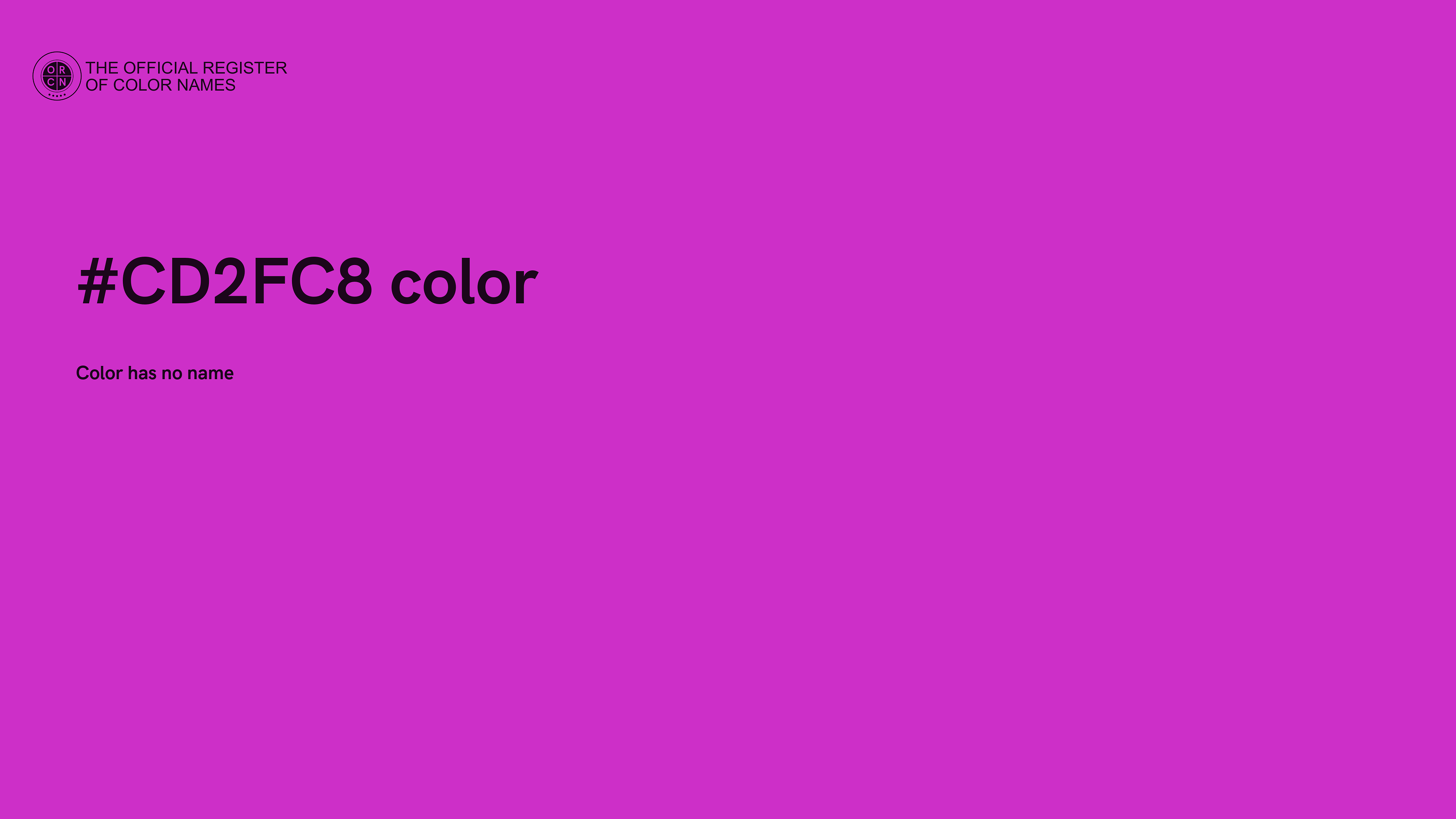 The digital color HEX #CD2FC8 belongs to the Magenta Color Family featuring High Saturation (Saturation Family) and Light (Brightness Family).