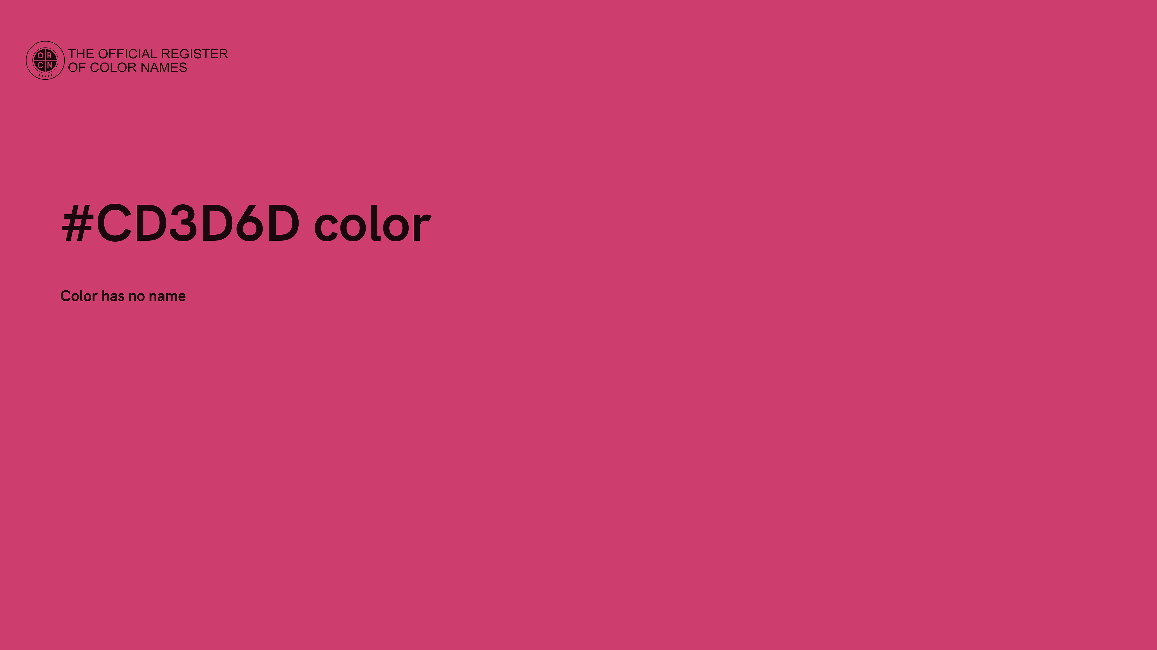 For printing in non digital world, #CD3D6D is represented in CMYK as 0 Cyan, 56 Magenta, 38 Yellow, and 20 Black (Key) (C:0 M:56 Y:38 K:20).