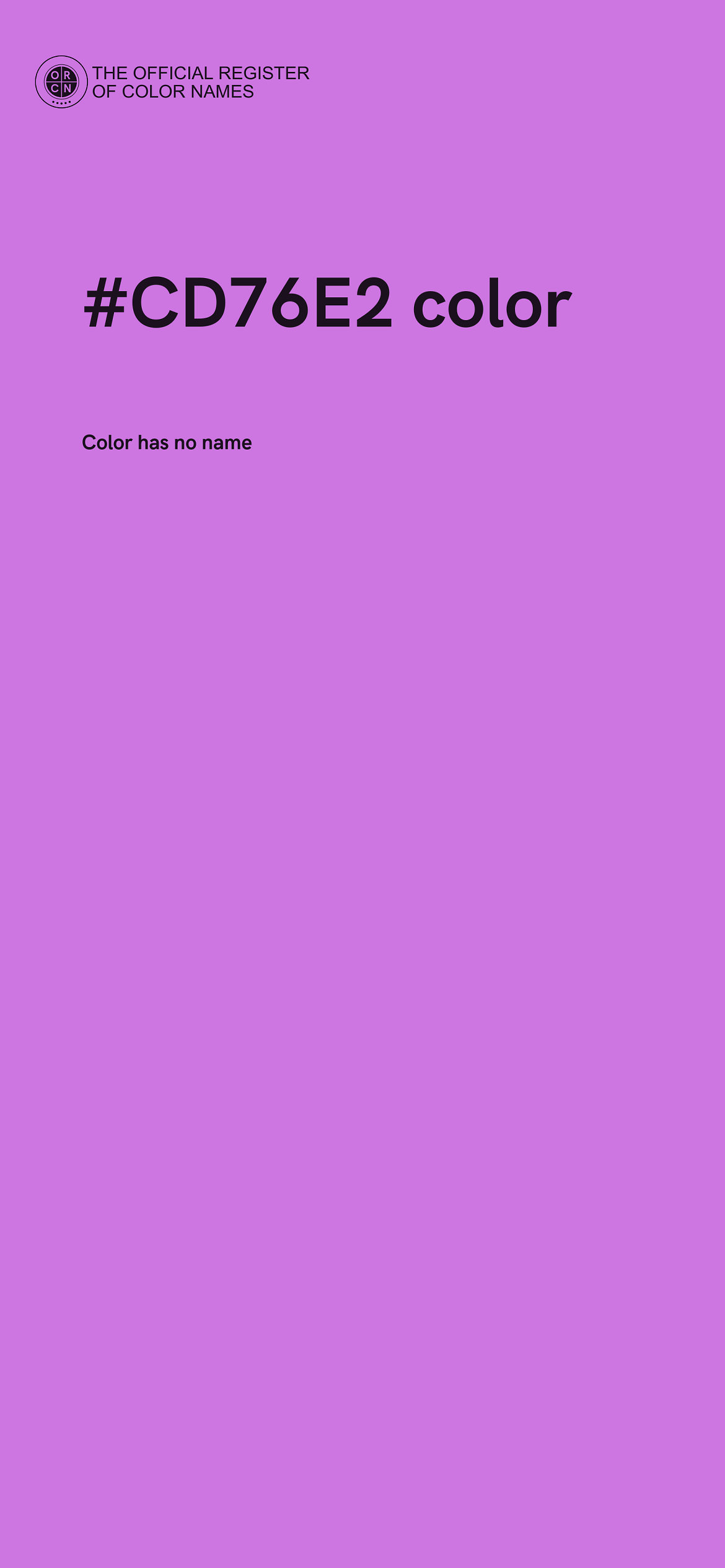 The digital color HEX #CD76E2 belongs to the Magenta Color Family featuring High Saturation (Saturation Family) and Very Light (Brightness Family).