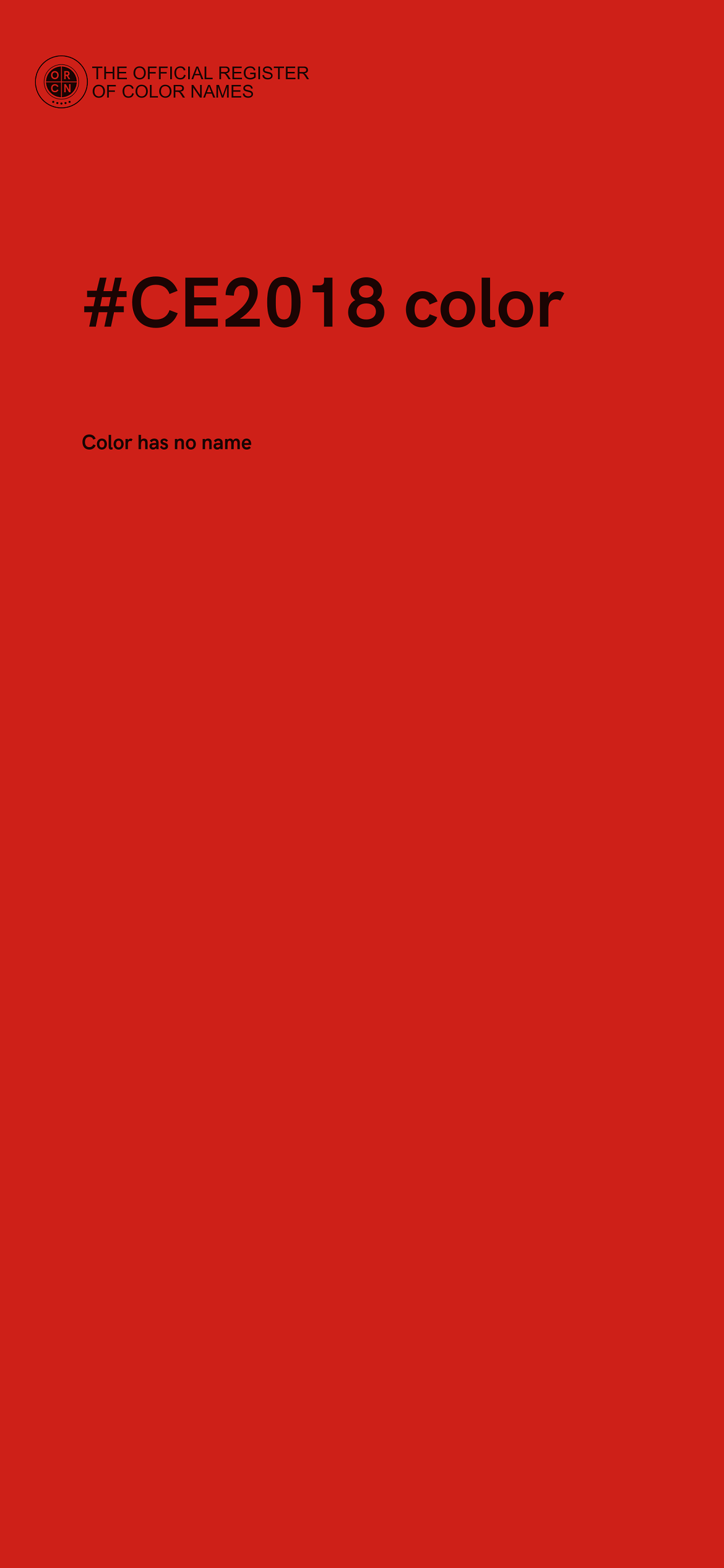 The digital color HEX #CE2018 belongs to the Red Color Family featuring High Saturation (Saturation Family) and Light (Brightness Family).