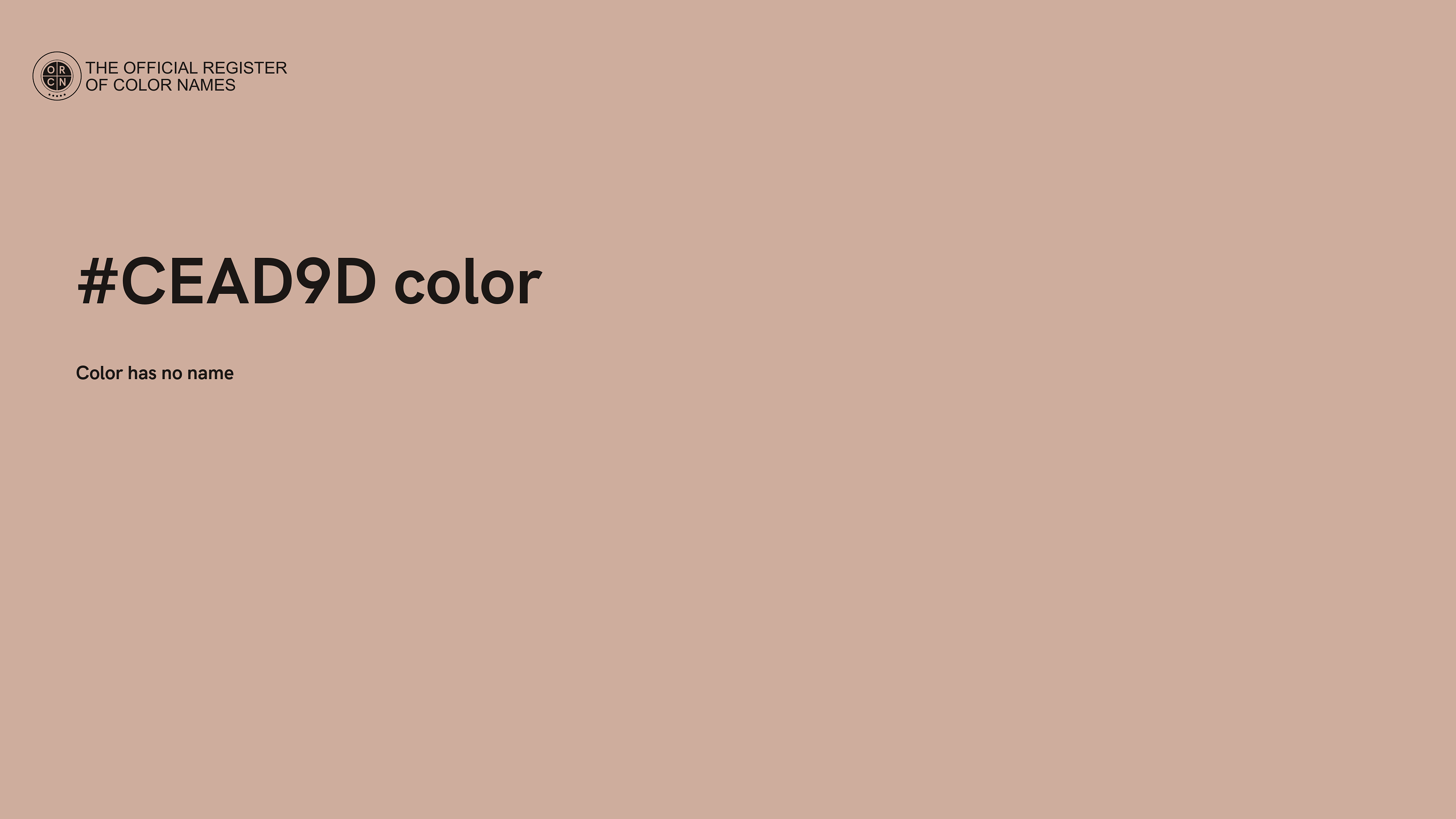 The digital color HEX #CEAD9D belongs to the Orange Color Family featuring Mild Saturation (Saturation Family) and Very Light (Brightness Family).