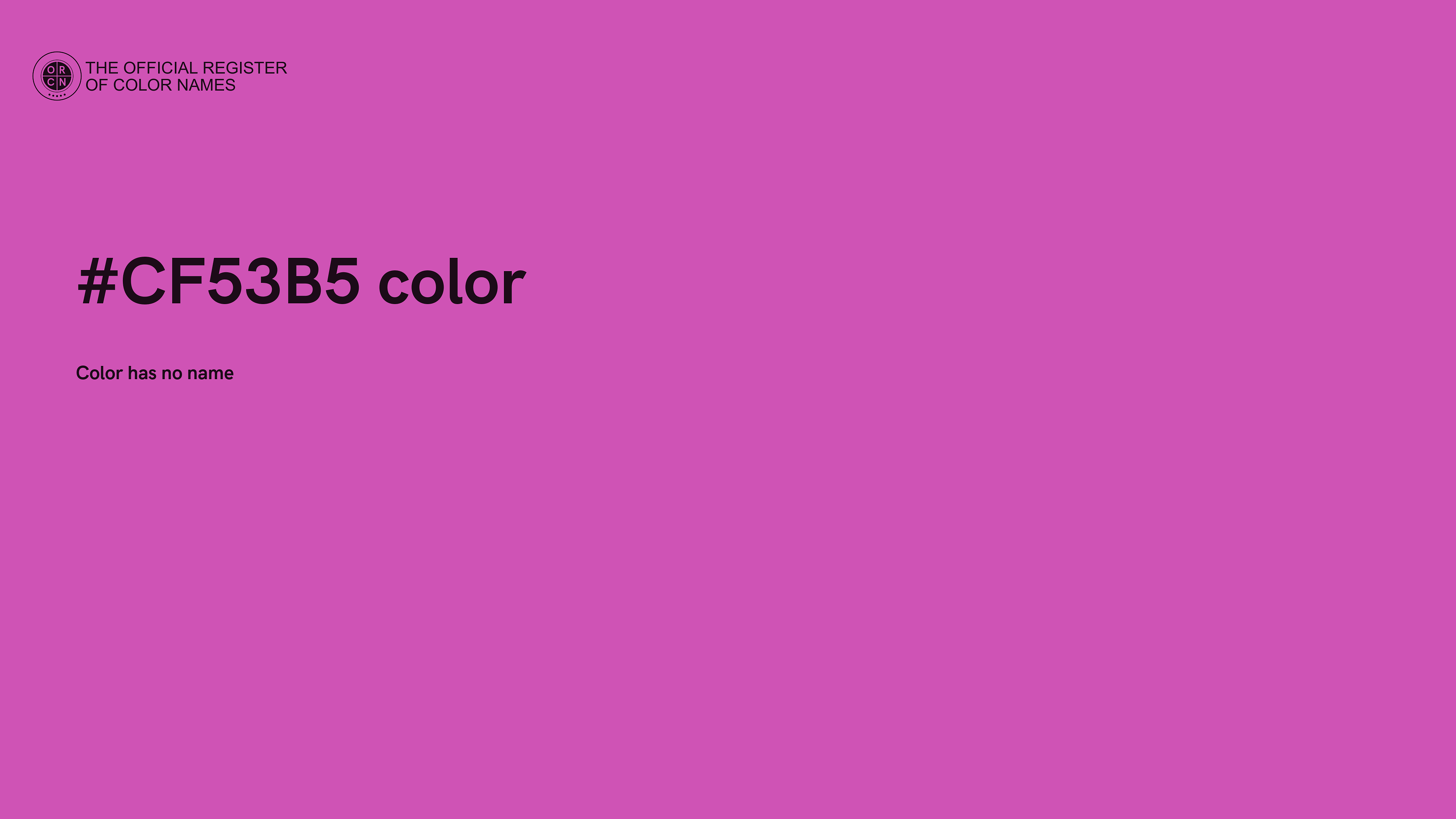 For printing in non digital world, #CF53B5 is represented in CMYK as 0 Cyan, 49 Magenta, 10 Yellow, and 19 Black (Key) (C:0 M:49 Y:10 K:19).