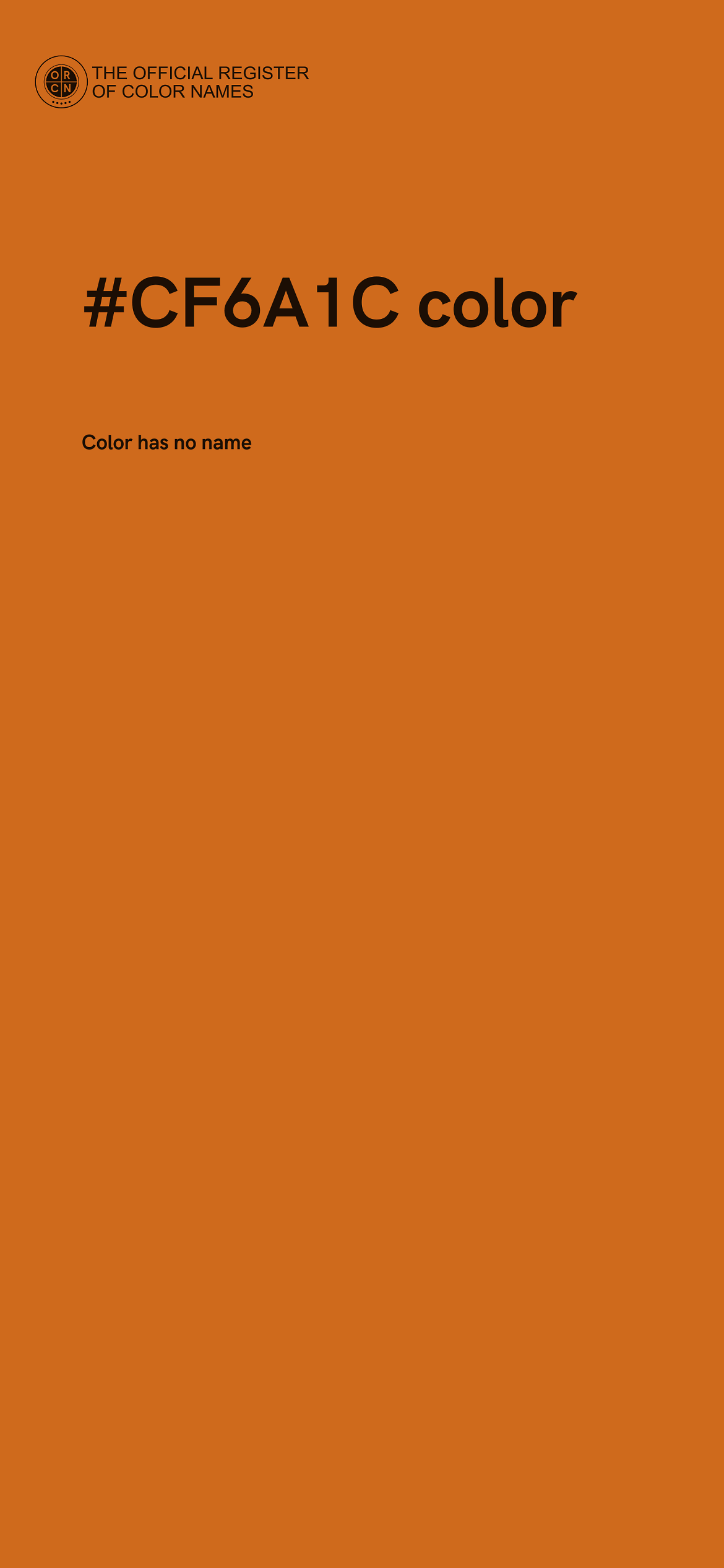 The digital color HEX #CF6A1C belongs to the Orange Color Family featuring High Saturation (Saturation Family) and Light (Brightness Family).