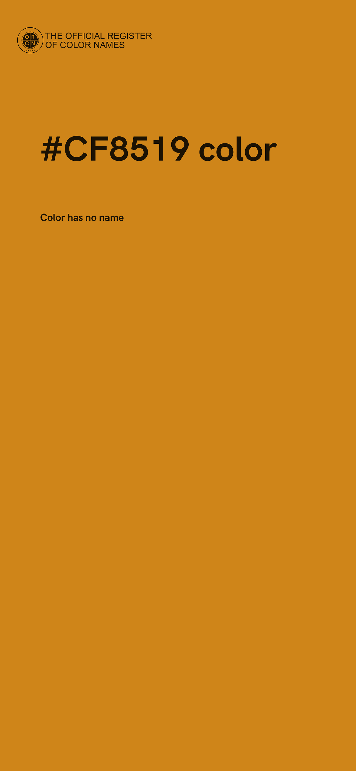 The digital color HEX #CF8519 belongs to the Orange Color Family featuring High Saturation (Saturation Family) and Light (Brightness Family).