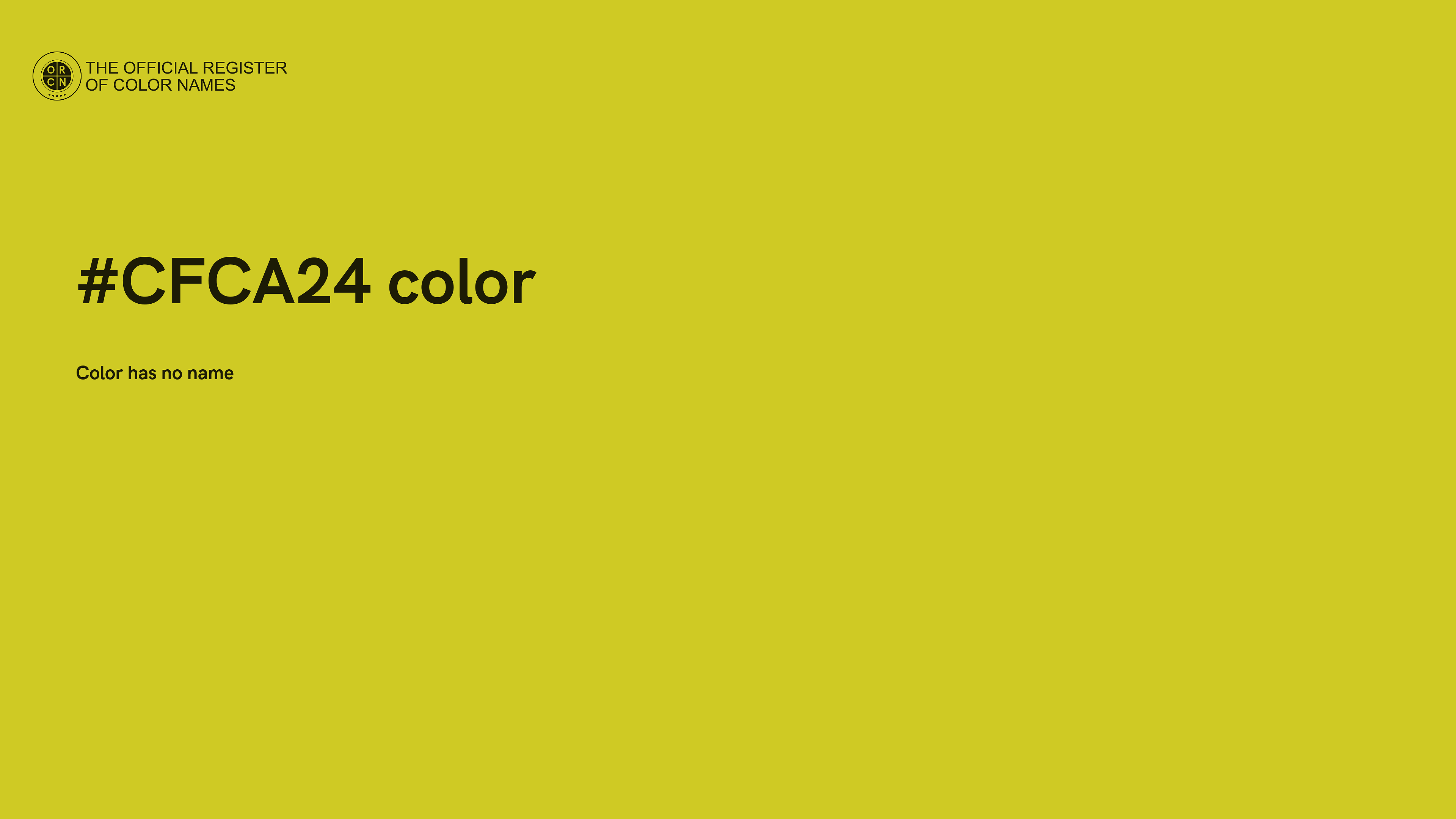 For printing in non digital world, #CFCA24 is represented in CMYK as 0 Cyan, 2 Magenta, 67 Yellow, and 19 Black (Key) (C:0 M:2 Y:67 K:19).