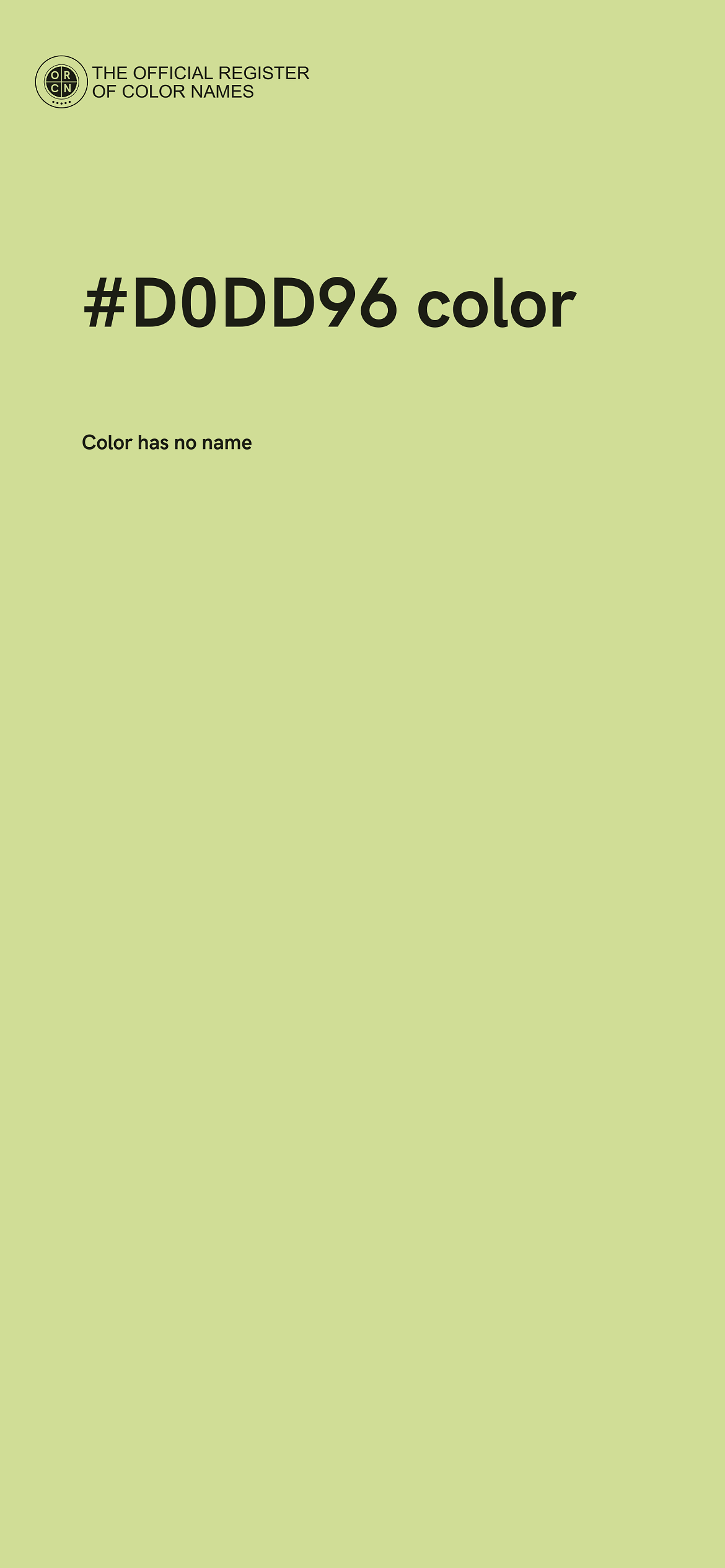 For printing in non digital world, #D0DD96 is represented in CMYK as 5 Cyan, 0 Magenta, 28 Yellow, and 13 Black (Key) (C:5 M:0 Y:28 K:13).