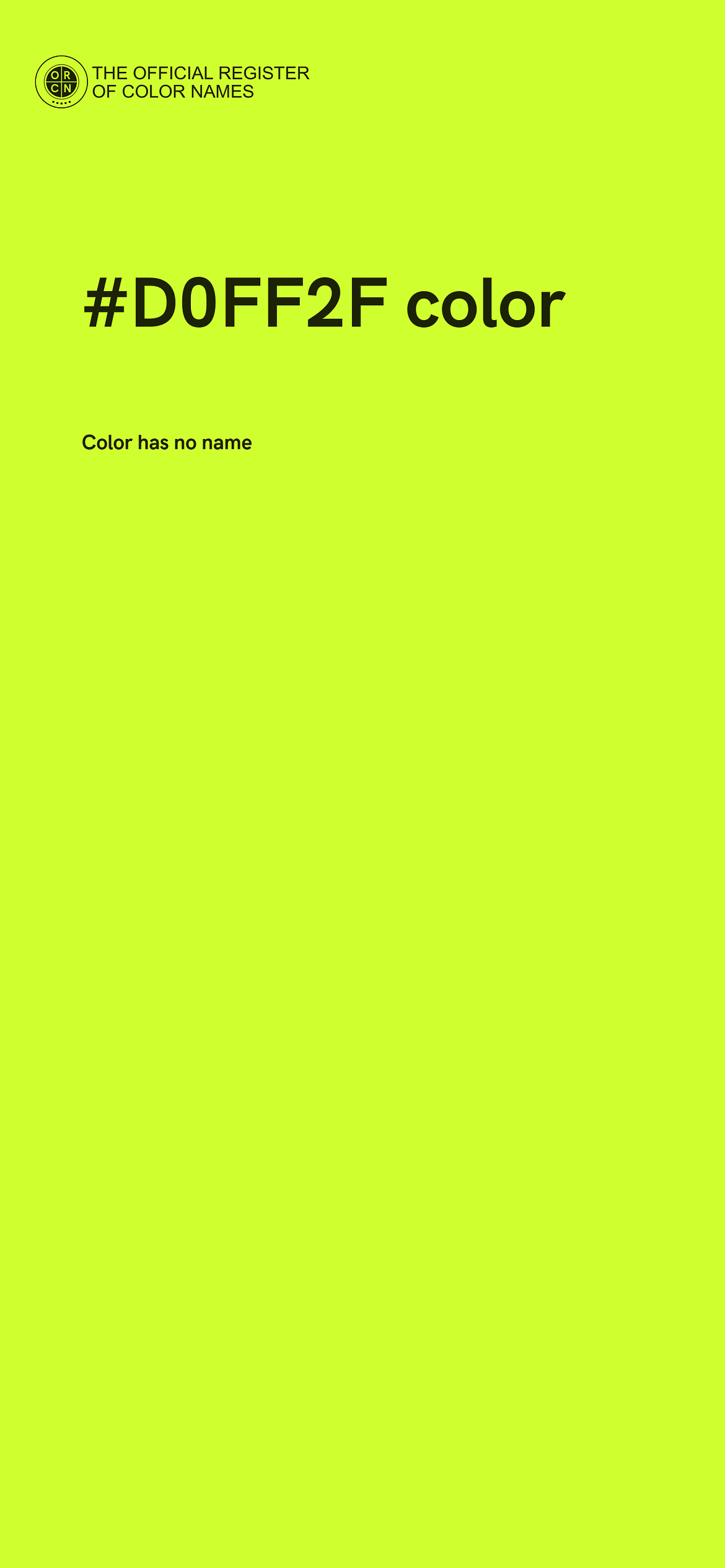 The digital color HEX #D0FF2F belongs to the Yellow Color Family featuring Full Saturation (Saturation Family) and Light (Brightness Family).