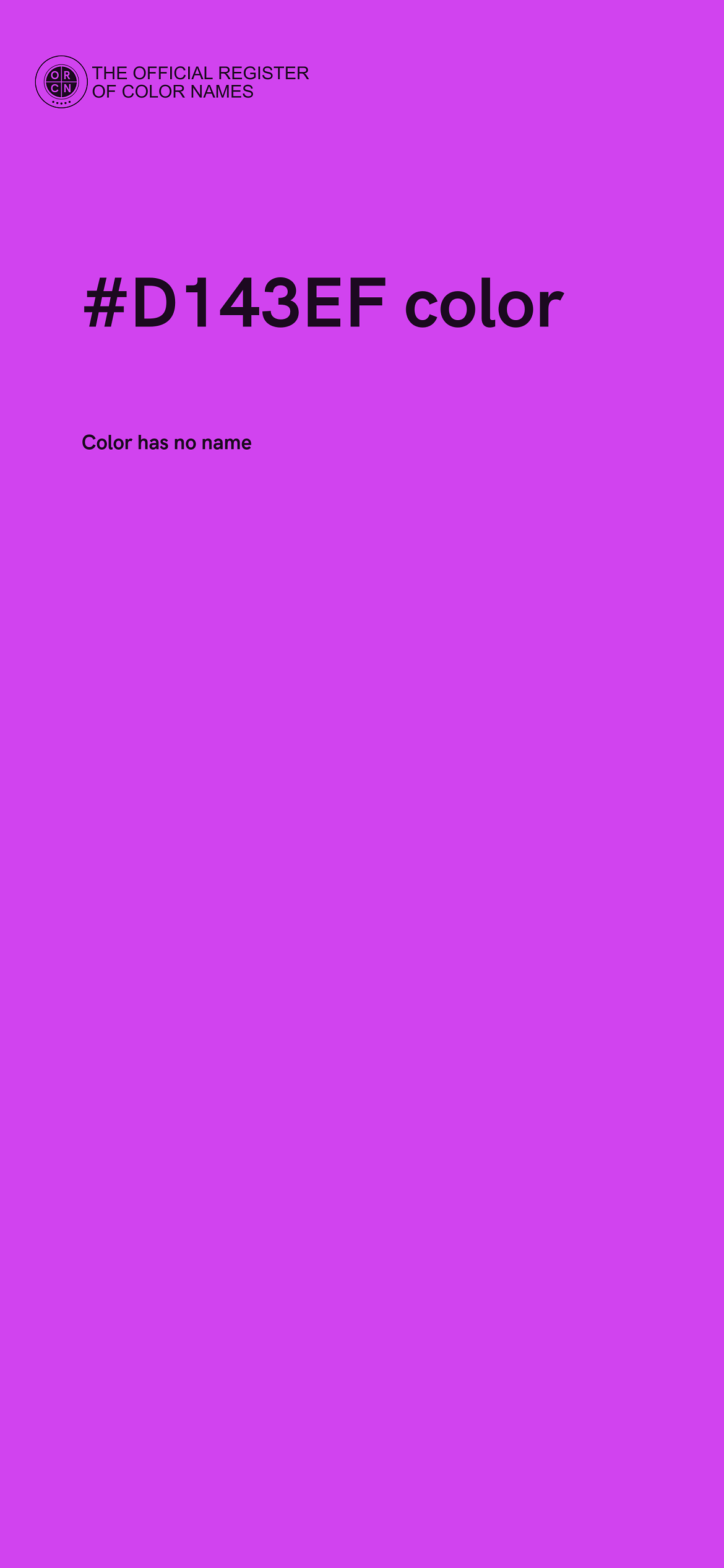 The digital color HEX #D143EF belongs to the Magenta Color Family featuring High Saturation (Saturation Family) and Very Light (Brightness Family).