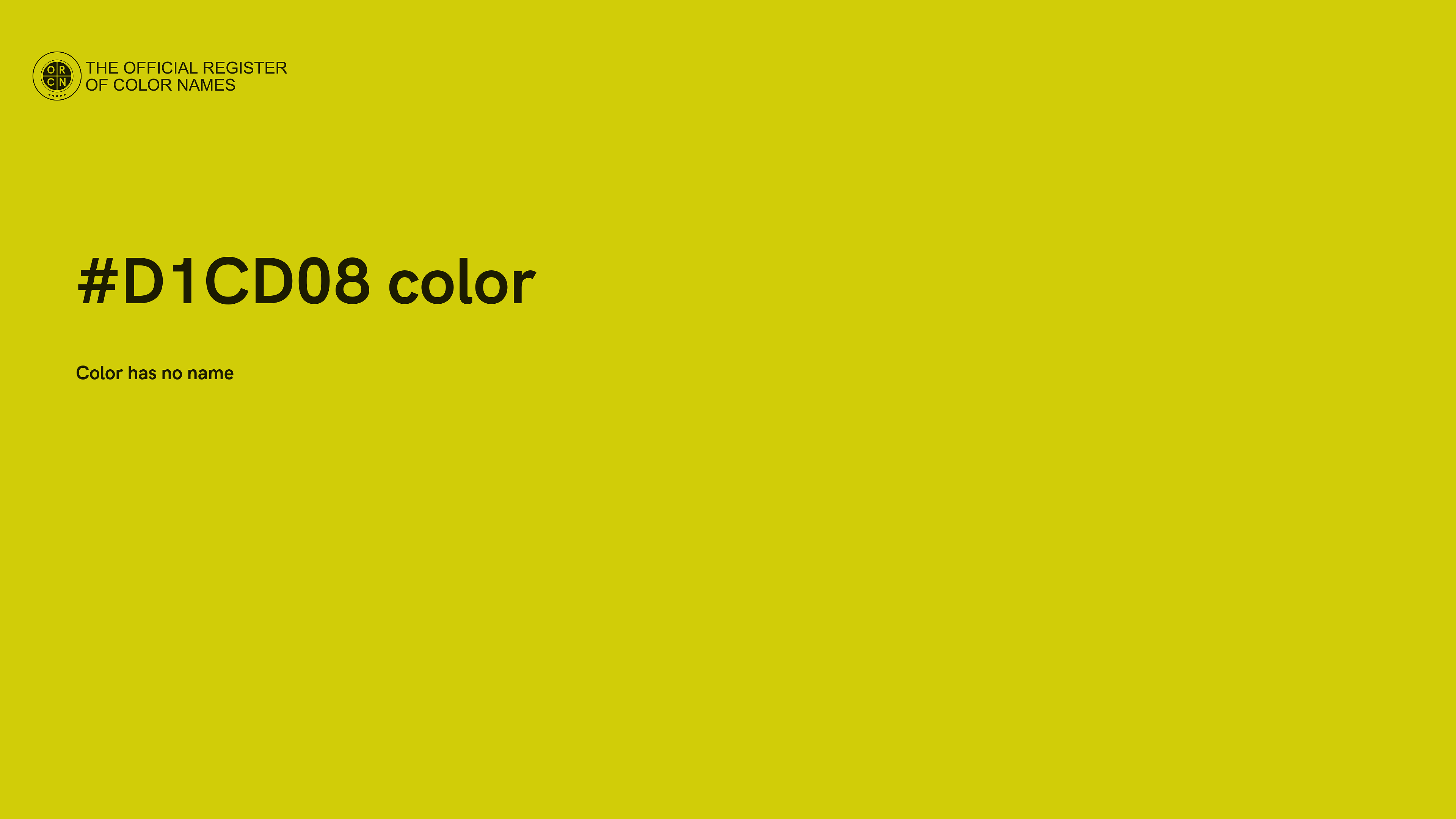 For printing in non digital world, #D1CD08 is represented in CMYK as 0 Cyan, 2 Magenta, 79 Yellow, and 18 Black (Key) (C:0 M:2 Y:79 K:18).