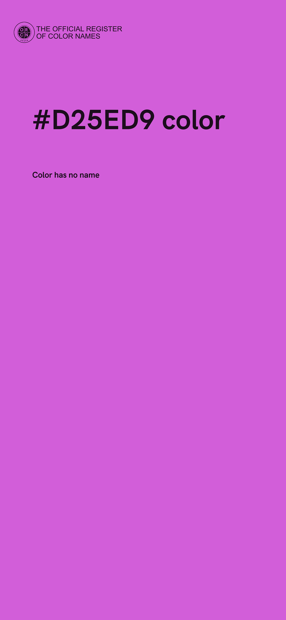 The digital color HEX #D25ED9 belongs to the Magenta Color Family featuring High Saturation (Saturation Family) and Very Light (Brightness Family).