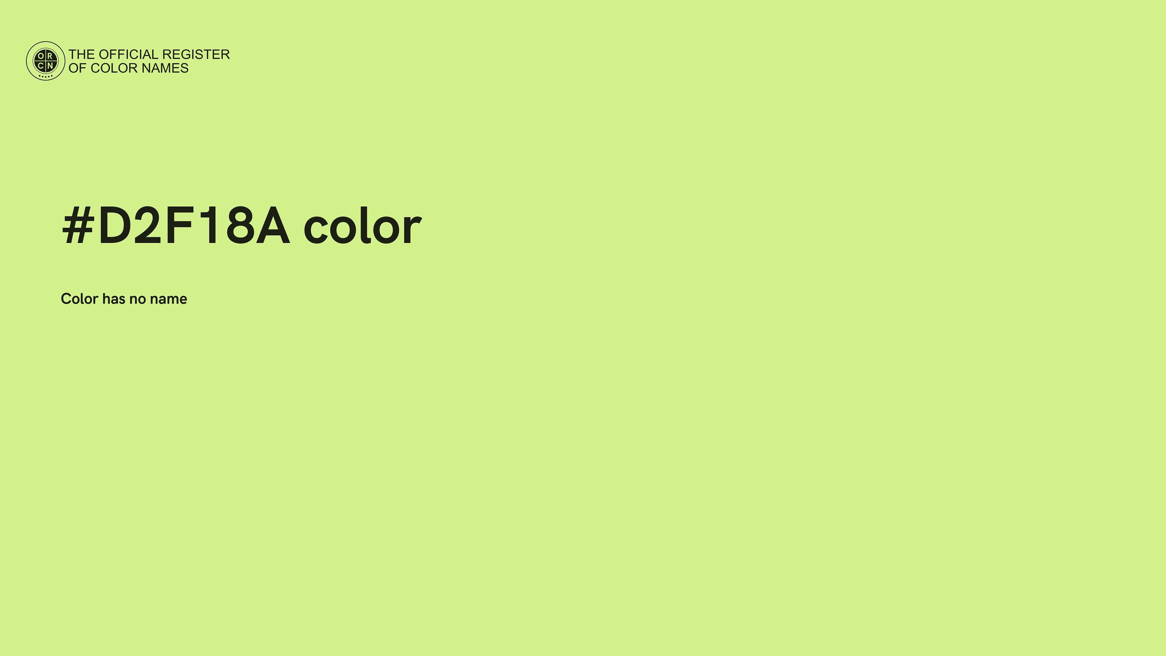 The digital color HEX #D2F18A belongs to the Chartreuse Color Family featuring High Saturation (Saturation Family) and Very Light (Brightness Family).