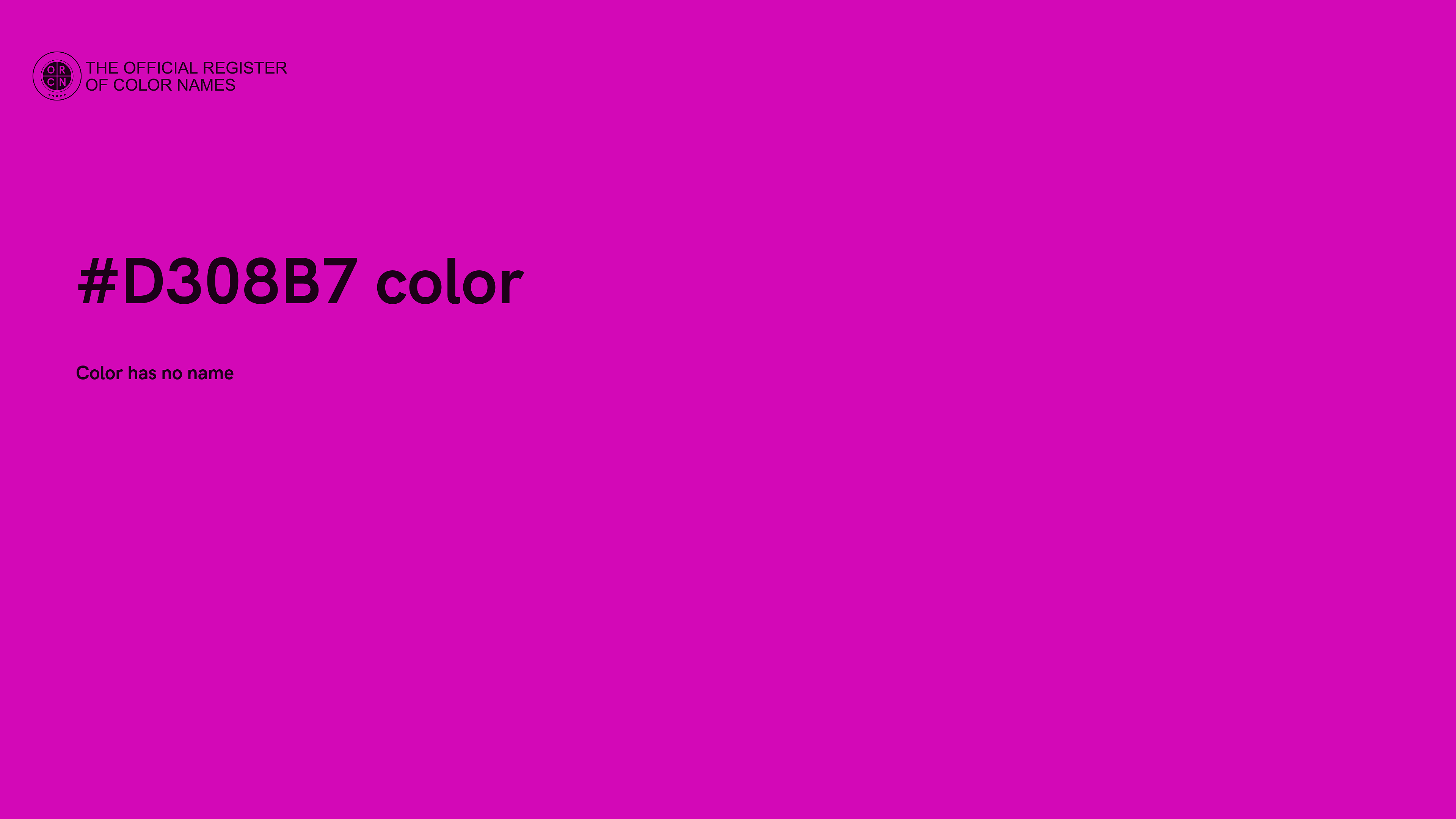 The digital color HEX #D308B7 belongs to the Magenta Color Family featuring Full Saturation (Saturation Family) and Light (Brightness Family).