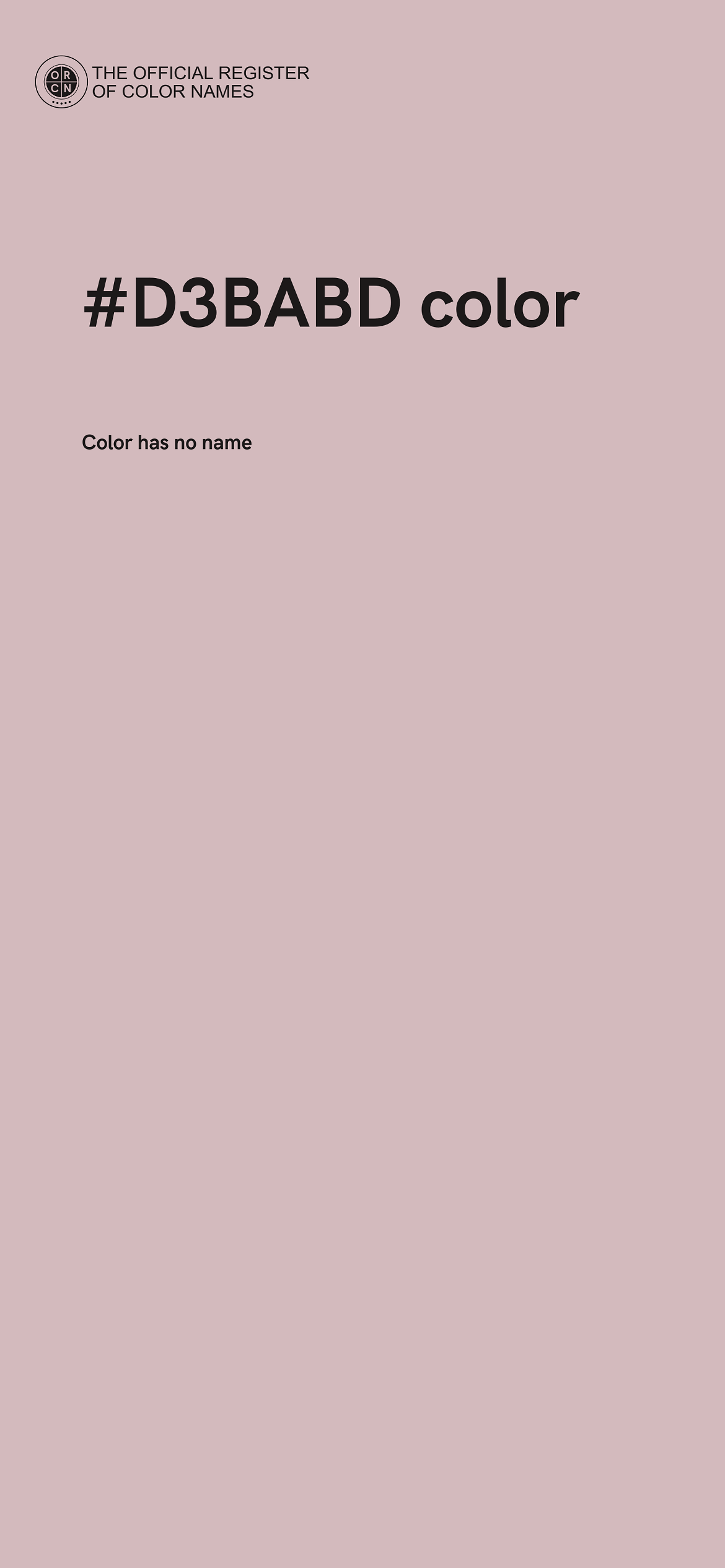 The digital color HEX #D3BABD belongs to the Red Color Family featuring Low Saturation (Saturation Family) and Very Light (Brightness Family).