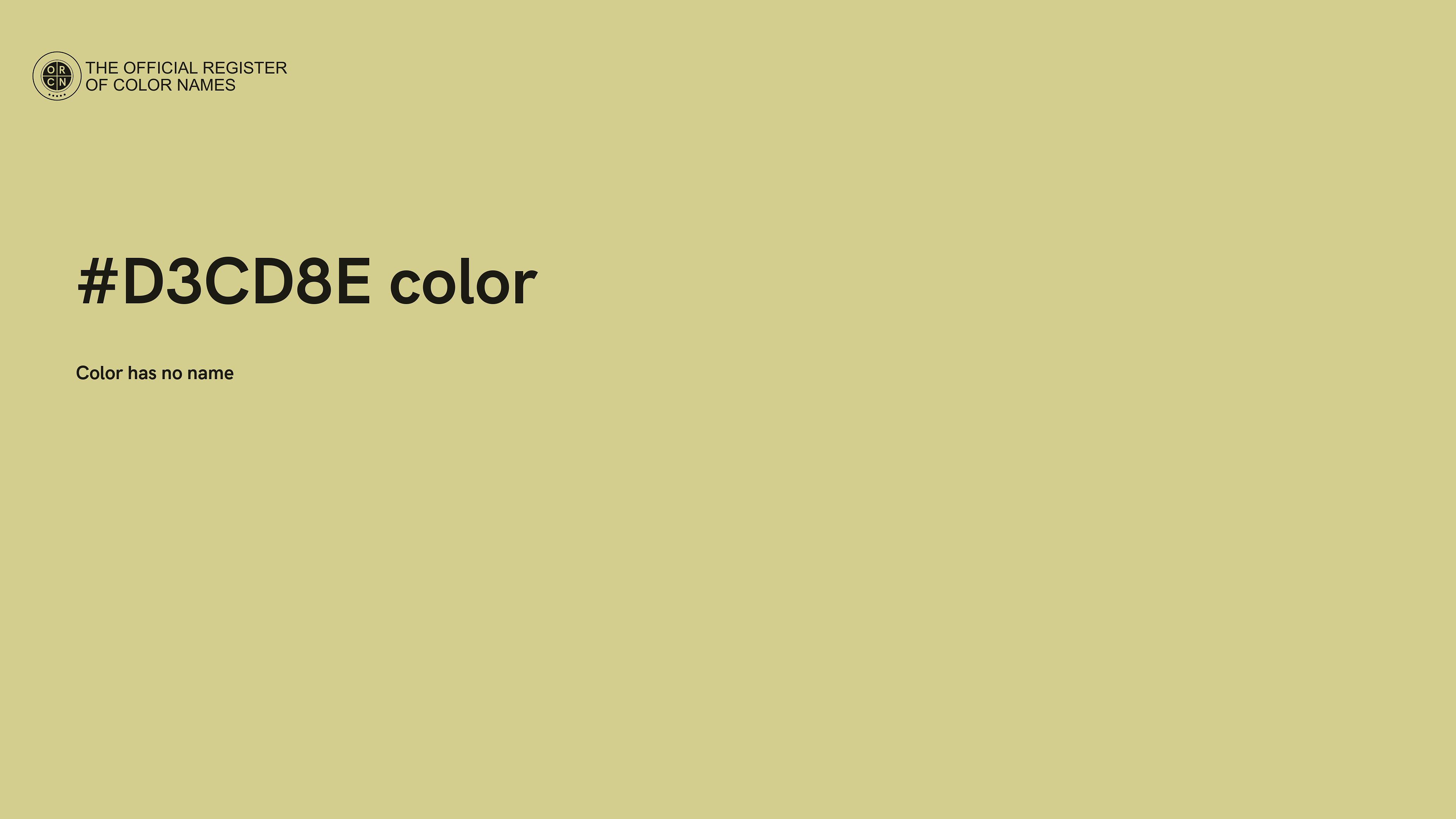 For printing in non digital world, #D3CD8E is represented in CMYK as 0 Cyan, 2 Magenta, 27 Yellow, and 17 Black (Key) (C:0 M:2 Y:27 K:17).