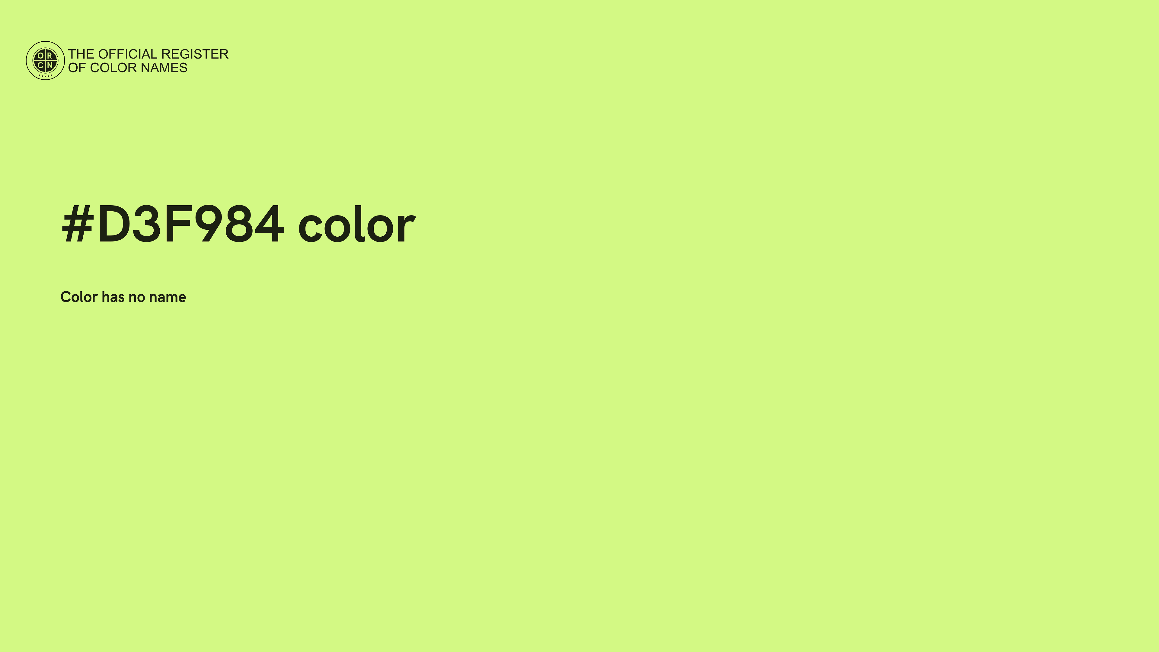 For printing in non digital world, #D3F984 is represented in CMYK as 15 Cyan, 0 Magenta, 46 Yellow, and 2 Black (Key) (C:15 M:0 Y:46 K:2).