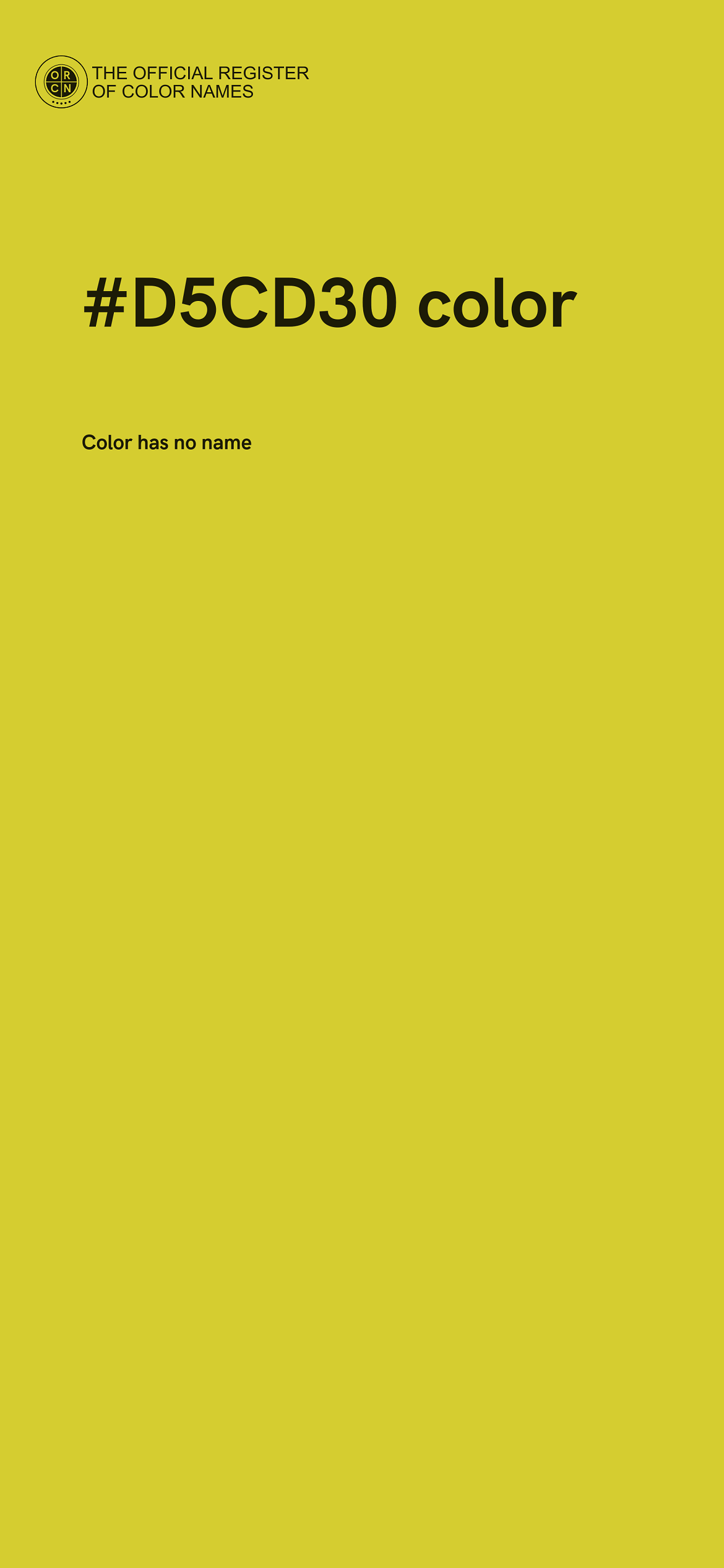 For printing in non digital world, #D5CD30 is represented in CMYK as 0 Cyan, 3 Magenta, 65 Yellow, and 16 Black (Key) (C:0 M:3 Y:65 K:16).